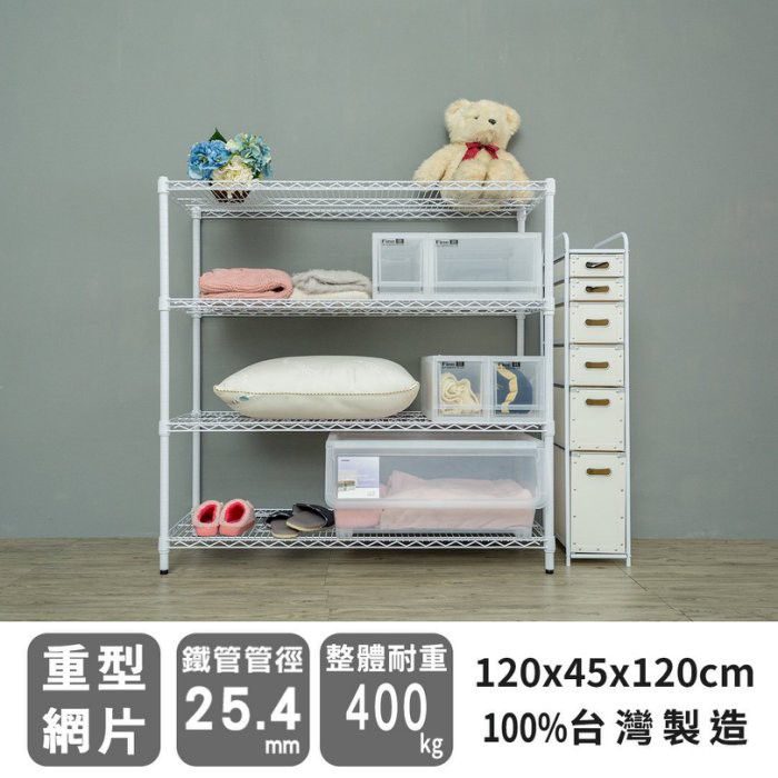 比架王 荷重型 120x45x120cm四層波浪架 兩色可選 /收納架/波浪架/置物架/鐵架黑色|白色Shelves & RacksParity 比架王居家生活館