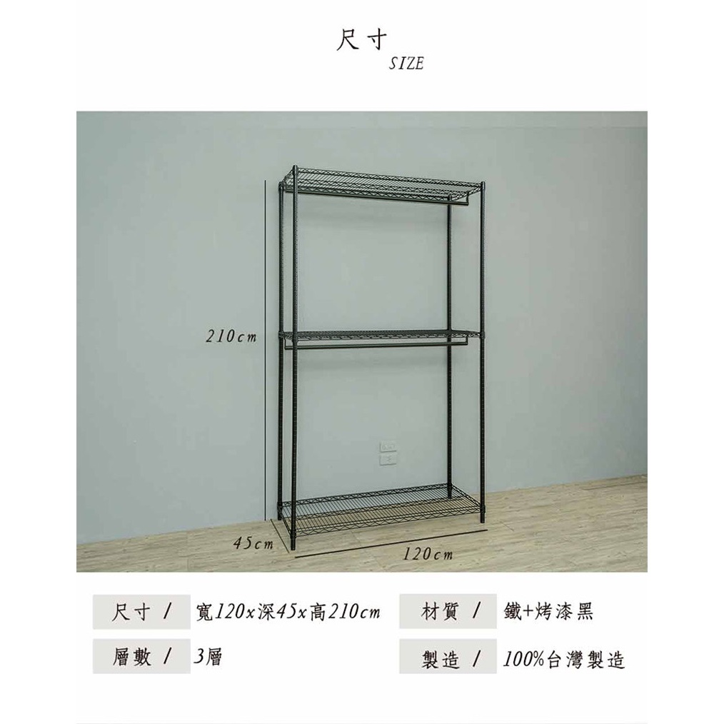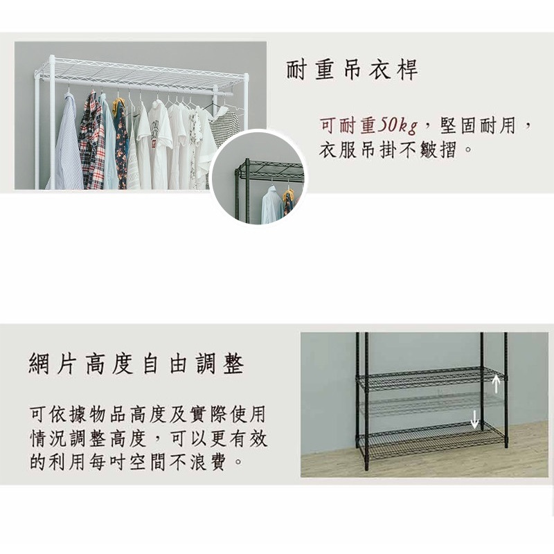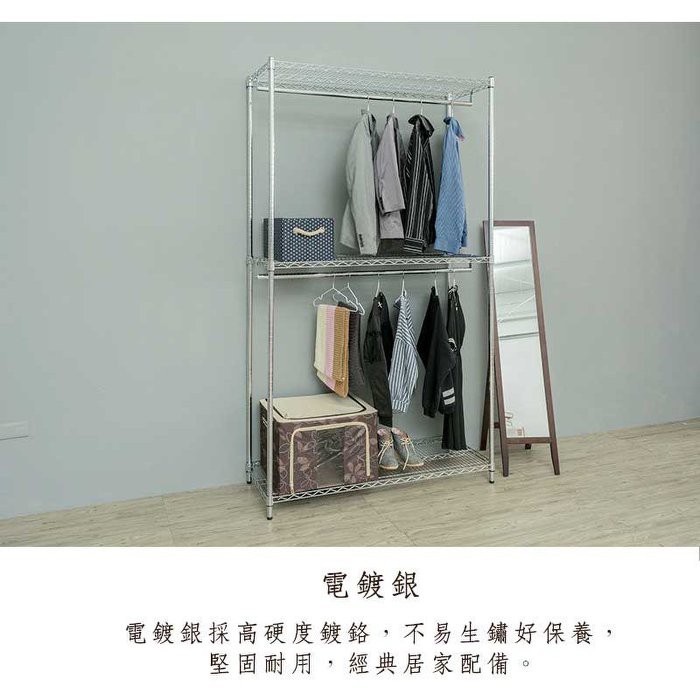 比架王 重型 120x45x210cm三層雙桿波浪衣櫥(三色) /收納架/波浪架/置物架/鐵架電鍍(插管)|黑|白WardrobesParity 比架王居家生活館