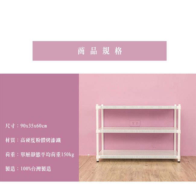 比架王 沖孔90x35x60cm三層置物架(烤漆白) /收納架/置物架/波浪架/鐵架比架王 沖孔90x35x60cm三層置物架(烤漆白) /收納架/置物架/波浪架/鐵架Shelves & RacksParity 比架王居家生活館