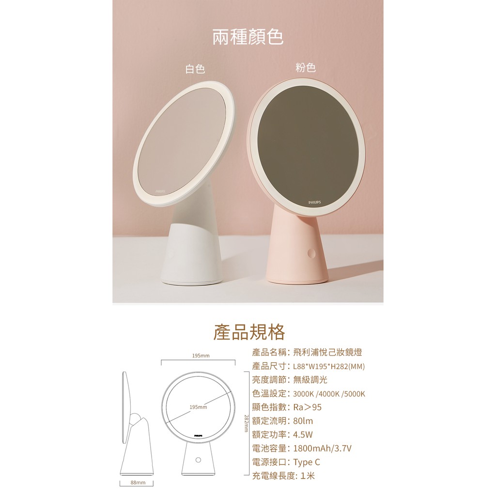 Philips 飛利浦 悅己 66244 LED化妝鏡燈 白色/粉色 (PO010/PO011)白色/PO010|粉色/PO011PHILIPS 飛利浦照明旗艦館