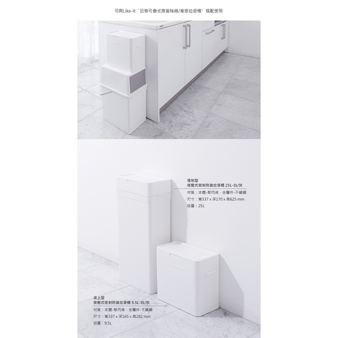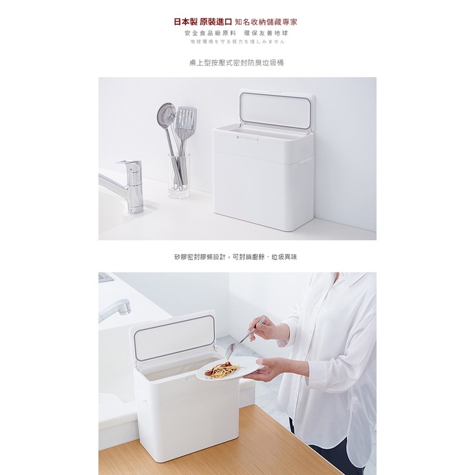 【日本like-it】日製桌上型按壓式密封防臭垃圾桶-9.5L白|灰Trash & Recycling Binsnicegoods 生活好東西