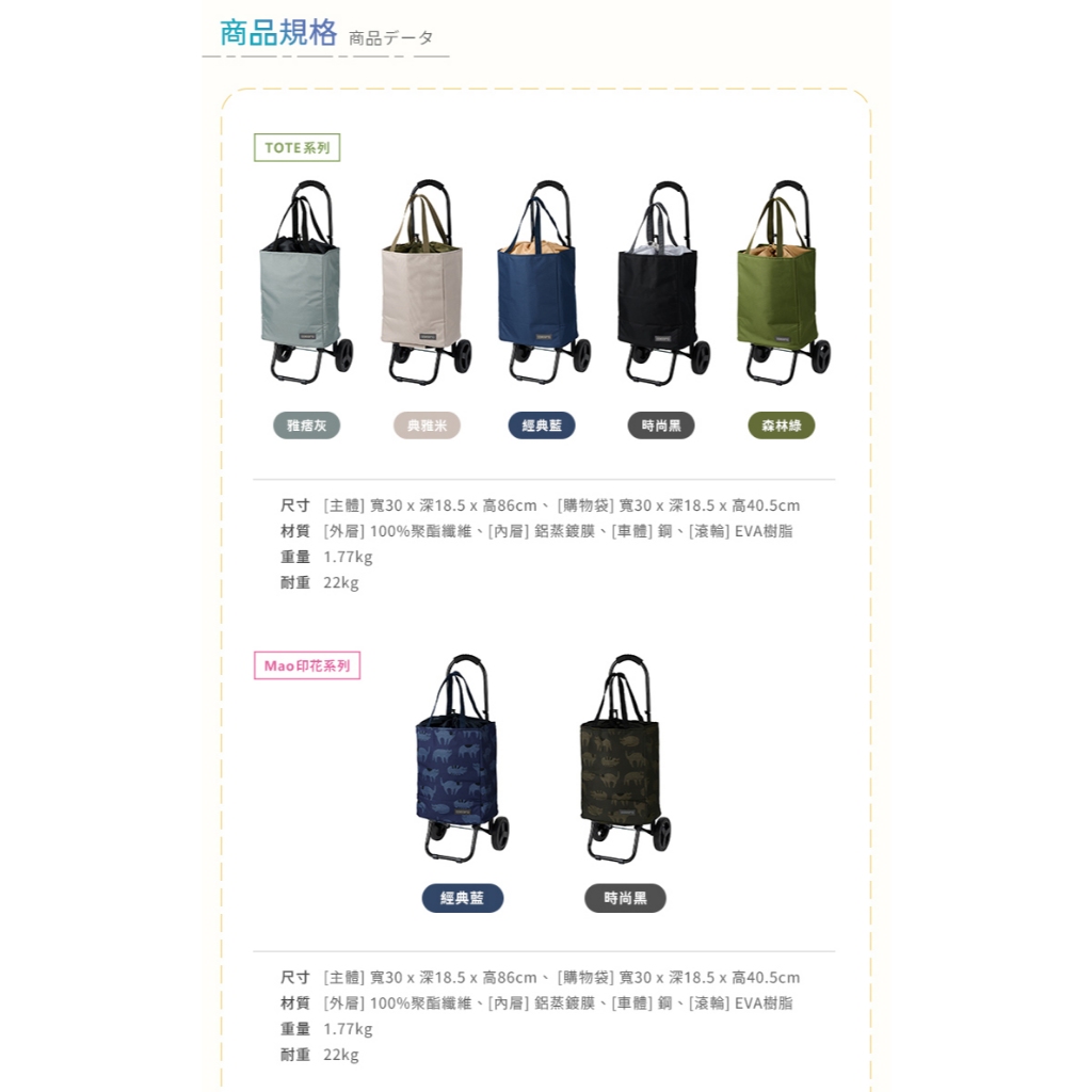 【日本cocoro】TOTE 保溫保冷摺疊購物車-22L-多色可選雅痞灰|典雅米|經典藍|時尚黑|森林綠Trolliesnicegoods 生活好東西