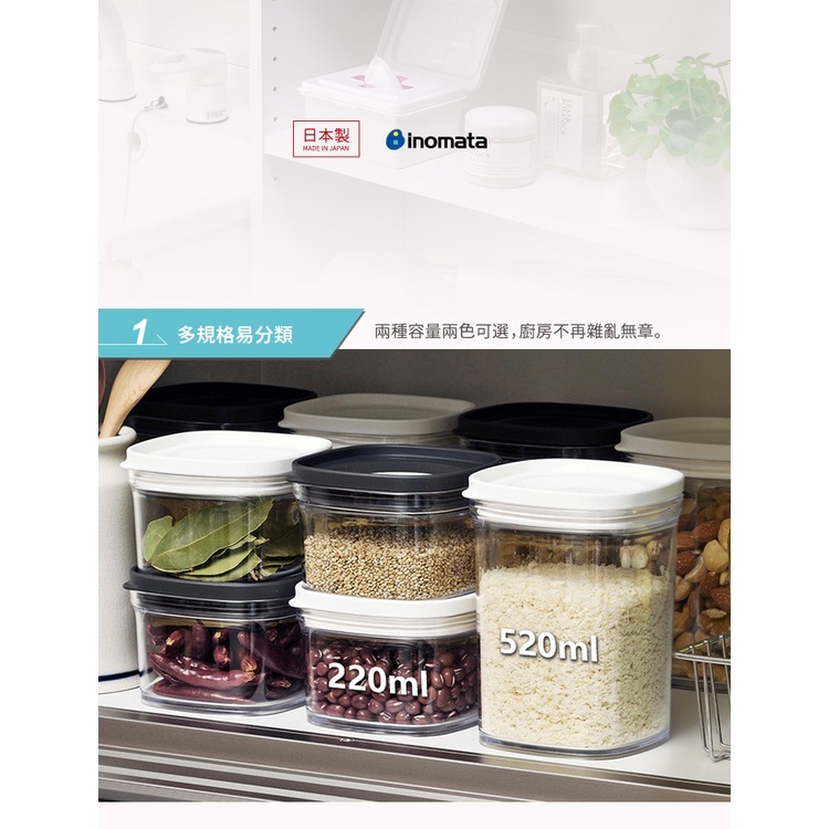 【日本inomata】日製可疊式食材密封保鮮盒-多色/多款可選220ml-黑|220ml-白|520ml-黑|520ml-白Food Storagenicegoods 生活好東西
