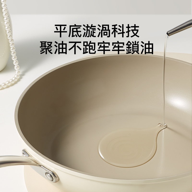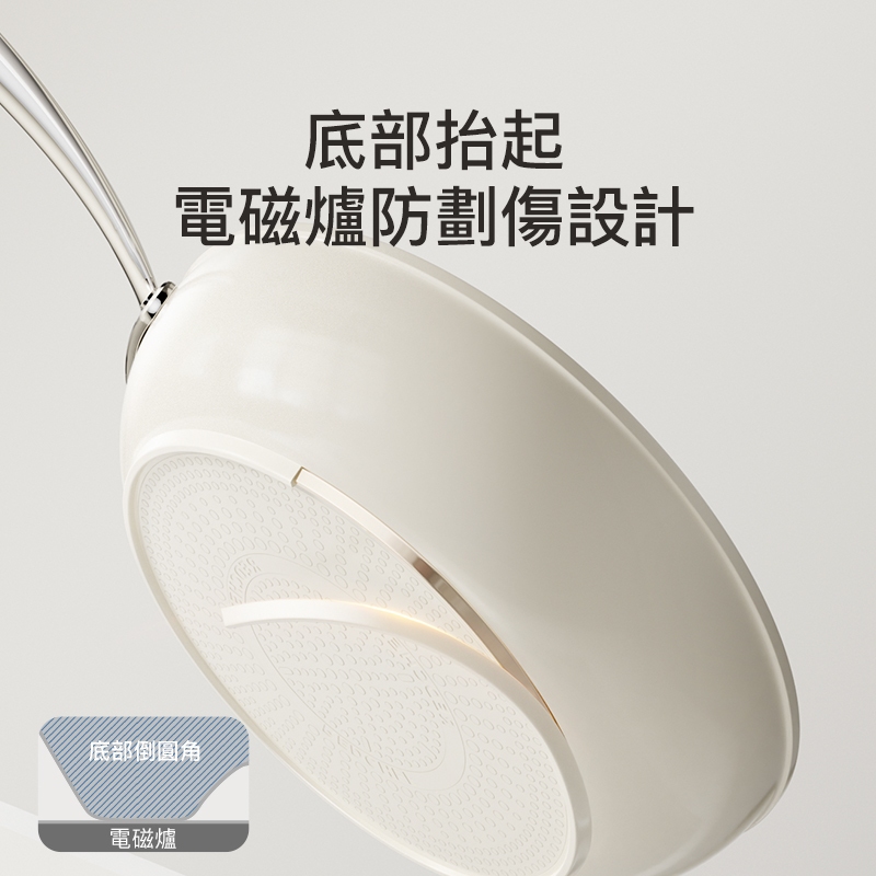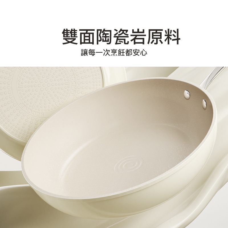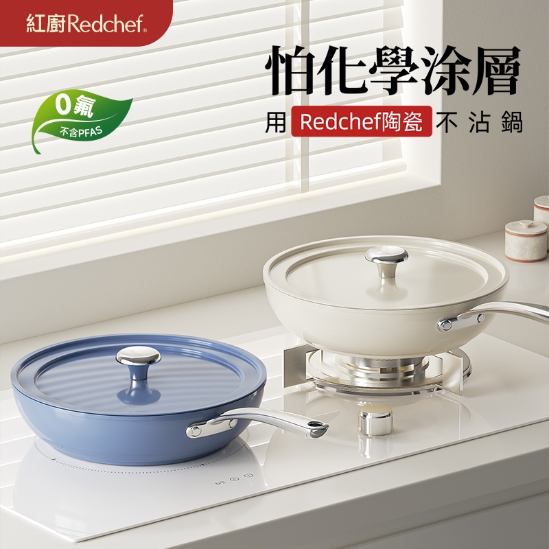 紅廚Redchef陶瓷岩 不沾平底鍋28cm加深帶蓋煎炒鍋 無毒不含PFAS/PFOA IH電磁爐適用奶白色28cmPansRedchef