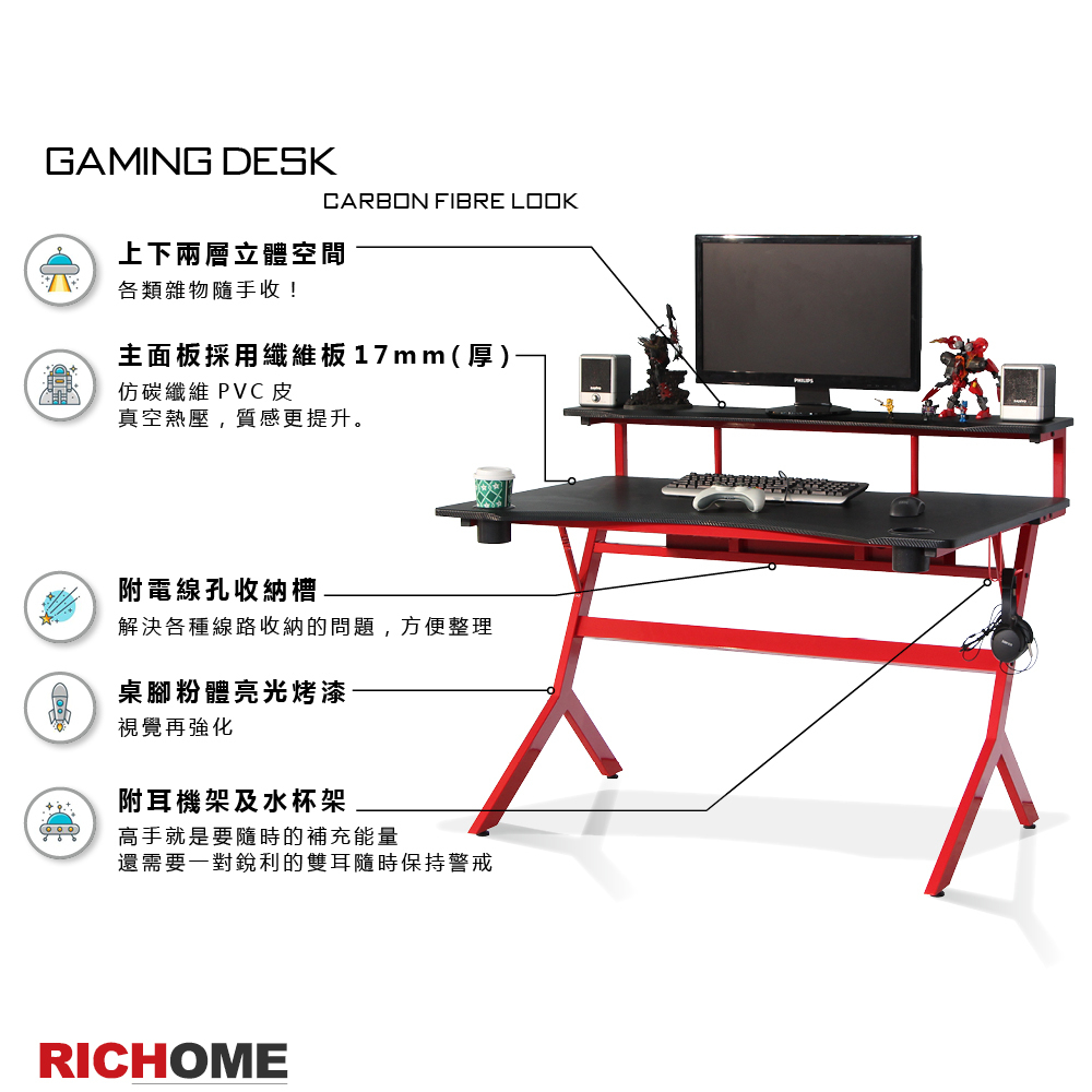 RICHOME 戰神高手電競電腦桌(雙杯架款)-2色 電腦桌 電競桌 書桌 工作桌 領券現折 PC309黑色|紅色Desks & TablesRICHOME 生活家居