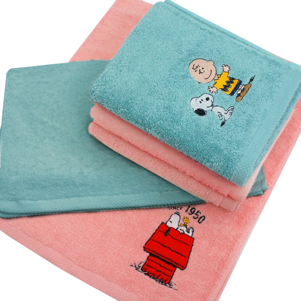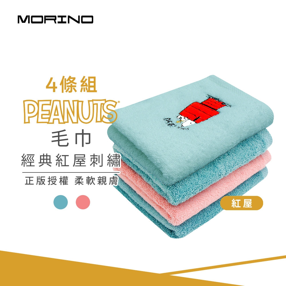 SNOOPY史努比-(4條組)MIT經典紅屋刺繡純棉毛巾_33*75cm SN301【MORINO】紅屋-珊瑚紅|紅屋-冰雪藍|紅屋-混搭Towels & BathrobesMORINO摩力諾 居家生活旗艦館