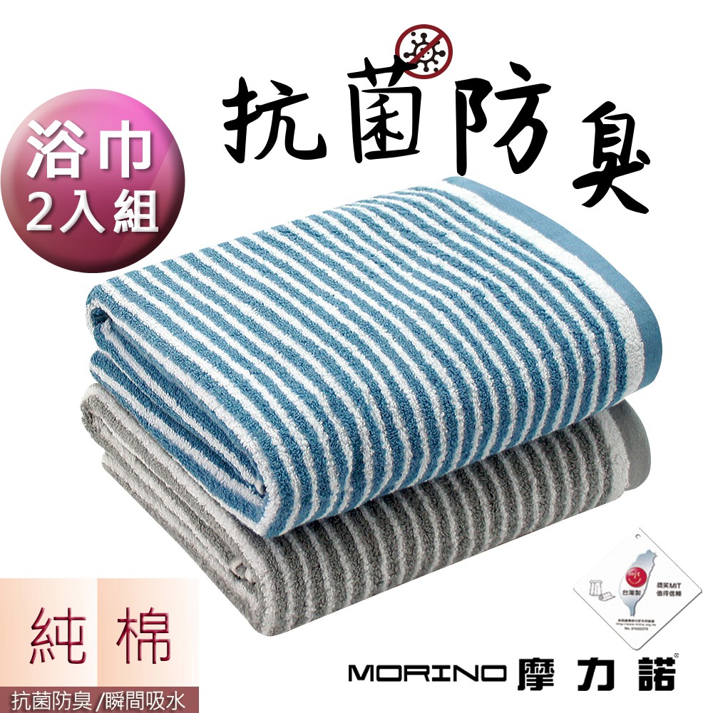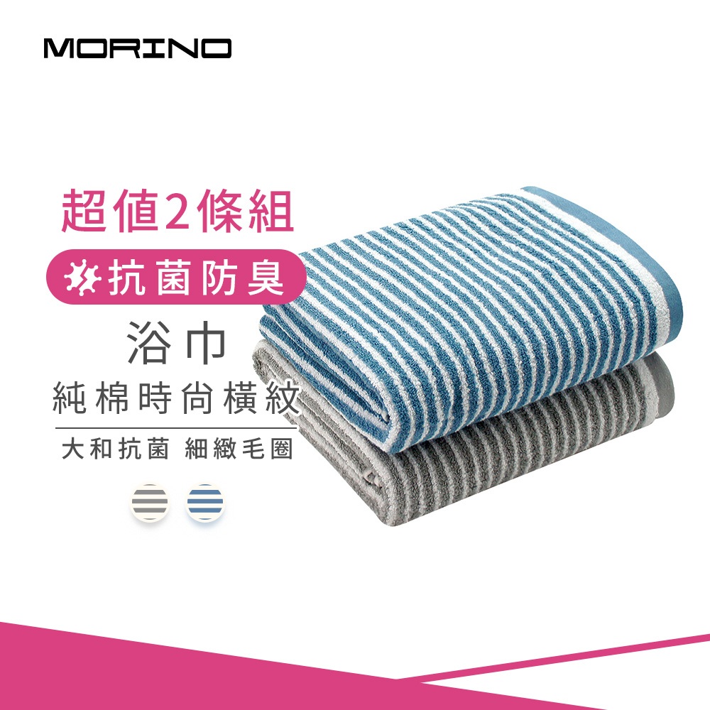 【MORINO】(2條組)抗菌防臭純棉時尚橫紋浴巾_65*135cm MO876 日本大和抗菌認證 台灣製造質感灰+丹寧藍|質感灰|丹寧藍Towels & BathrobesMORINO摩力諾 居家生活旗艦館
