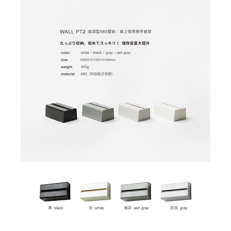 【日本ideaco】加深型ABS壁掛/桌上兩用擦手紙架-4色可選白|黑|灰白|岩灰Tissue Holdersnicegoods 生活好東西