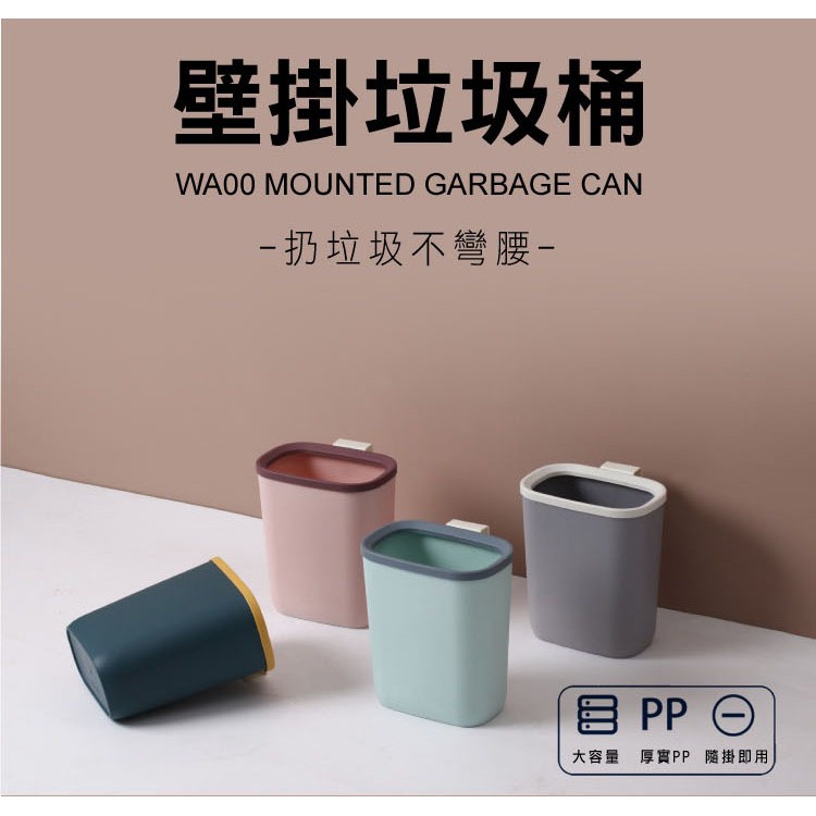 STYLE格調|繽紛彩色壁掛式置物桶(四款可選)【T-01】置物桶 分類桶 垃圾桶 廚餘桶 壁掛桶【現貨免運】灰白色|淺粉色|粉藍色|墨綠色Trash & Recycling BinsSTYLE格調居家美學