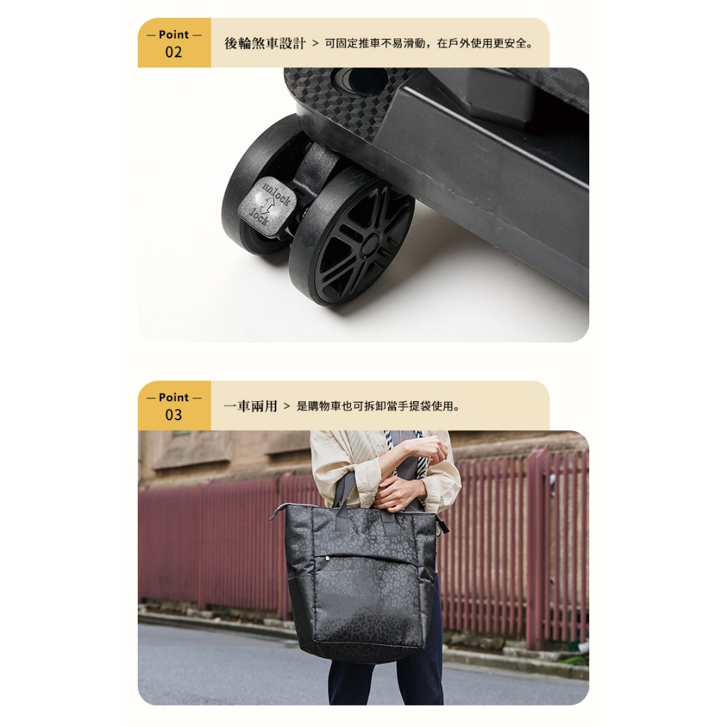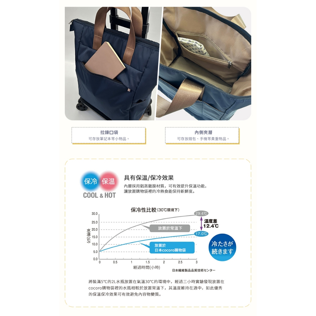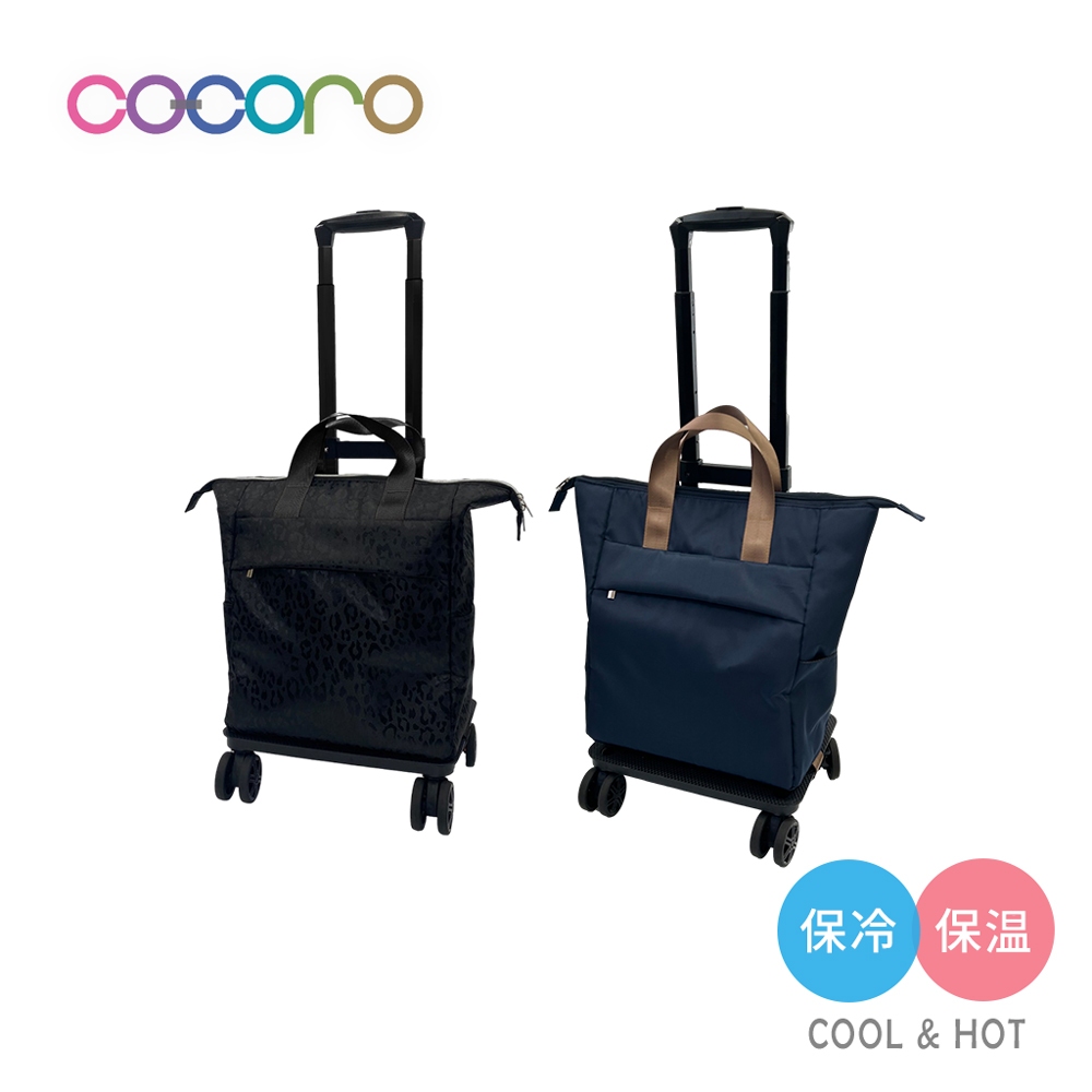 【日本cocoro】豹紋印花多功能保溫保冷四輪摺疊購物車-18L-多色可選時尚黑|海軍藍Trolliesnicegoods 生活好東西