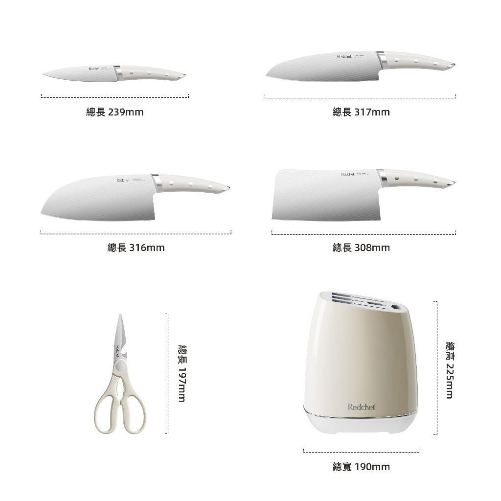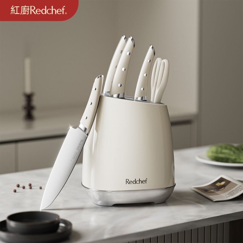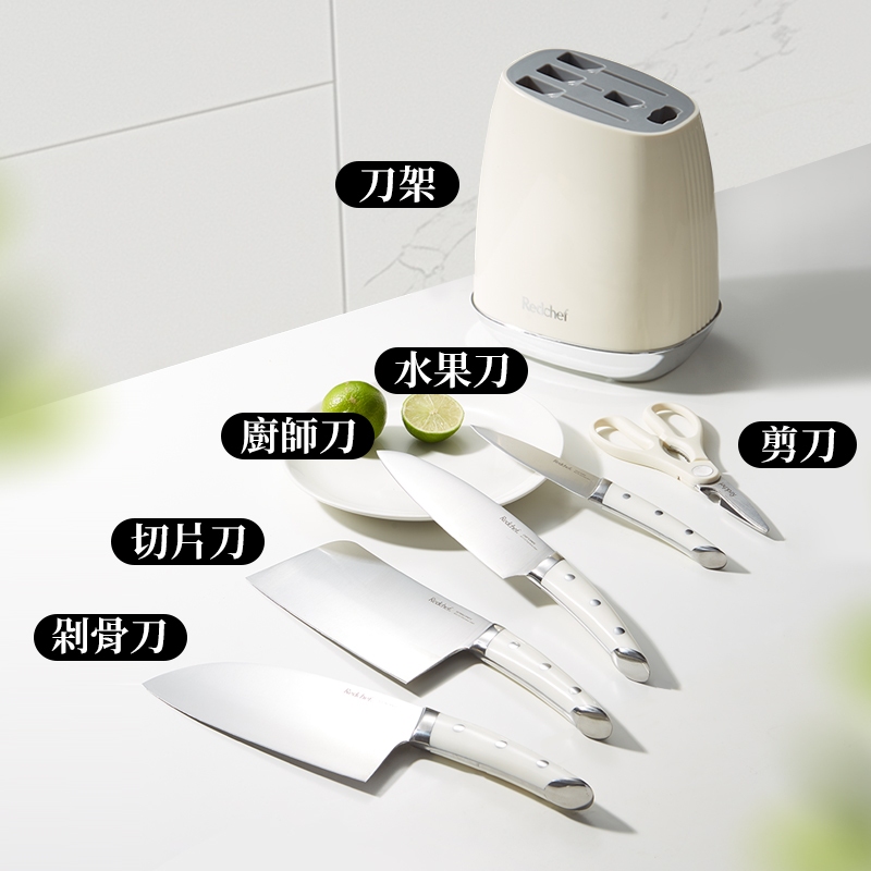 红厨Redchef不鏽鋼奶油白刀具六件套 厨房刀 厨師刀 多用途刀刀具六件套Knives & Kitchen ScissorsRedchef