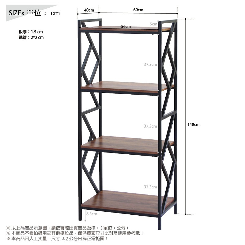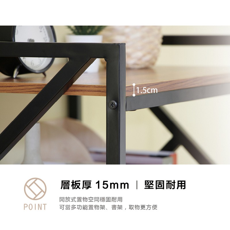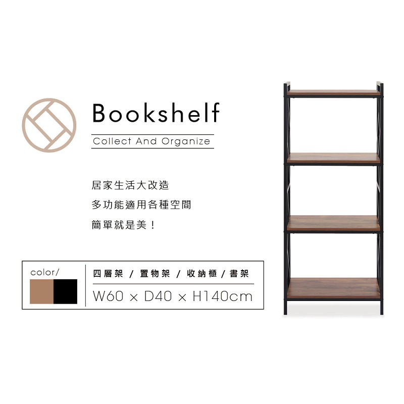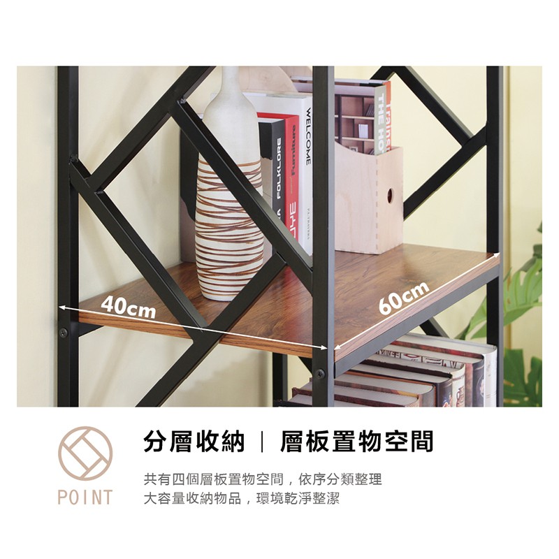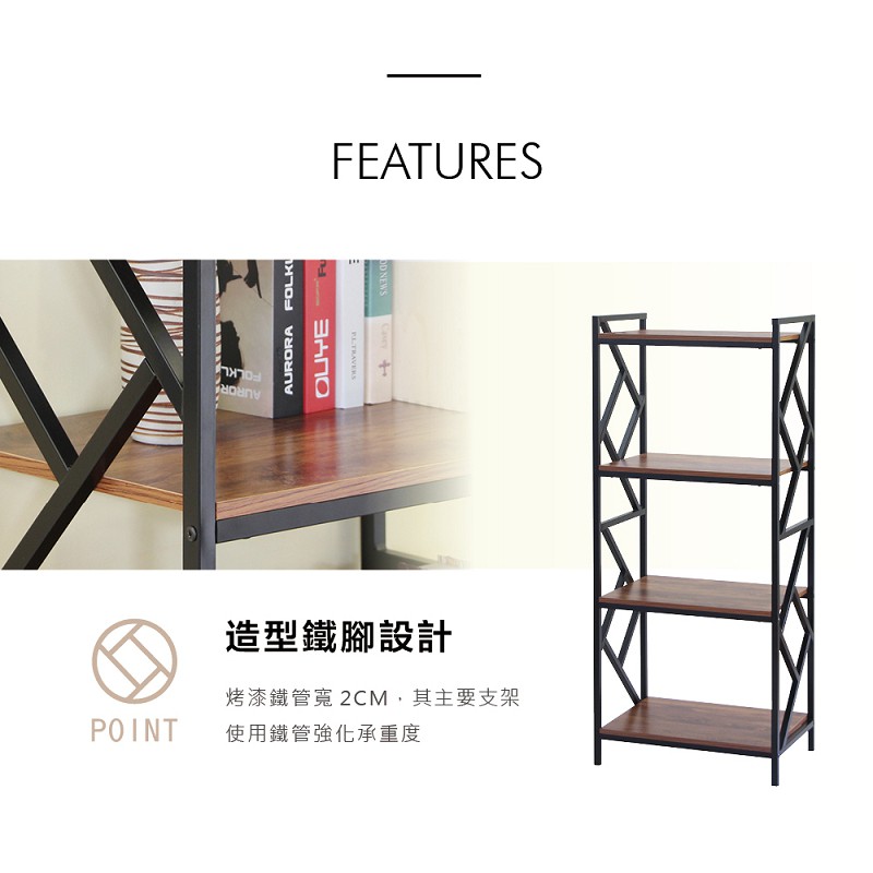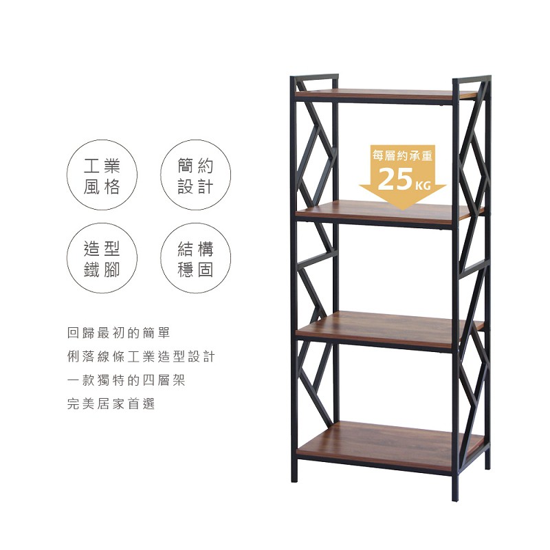 RICHOME 黑森工業風四層架 玄關架 置物架 收納架 四層架 工業風 書架 展示架 SH540胡桃木色Shelves & RacksRICHOME 生活家居