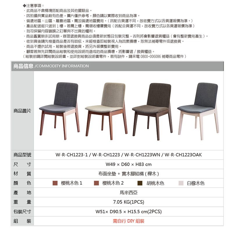 RICHOME CH1223 和風尊貴餐椅(只有餐椅)-2色 餐椅 咖啡椅 椅子 電腦椅 辦公椅胡桃木色|白橡木色Benches, Chairs & StoolsRICHOME 生活家居