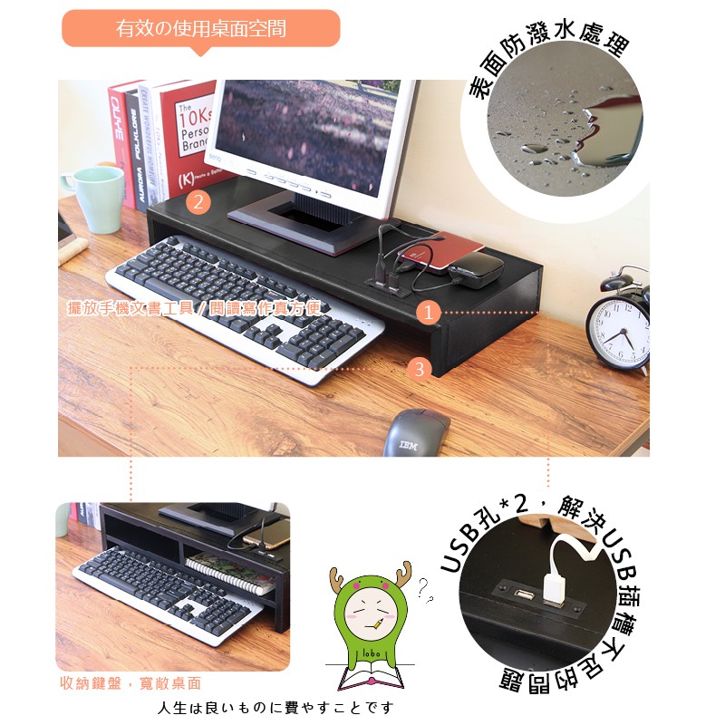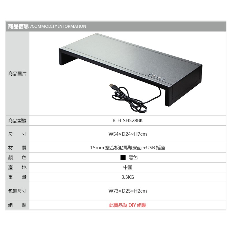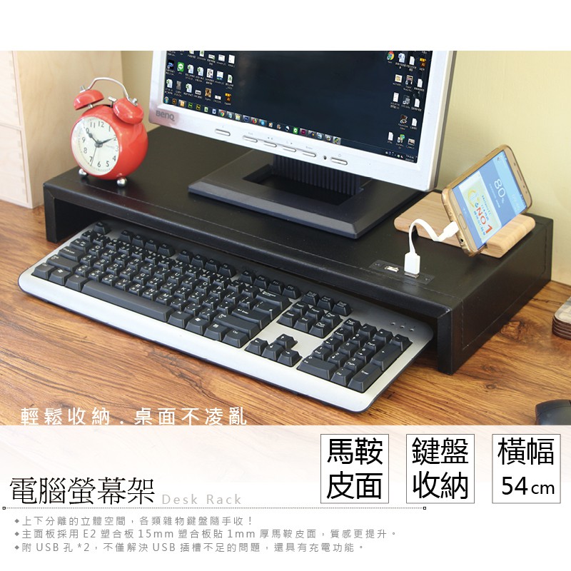 RICHOME SH528 皮面桌上架 螢幕架 桌上架 收納架 增高架 USB黑色Shelves & RacksRICHOME 生活家居