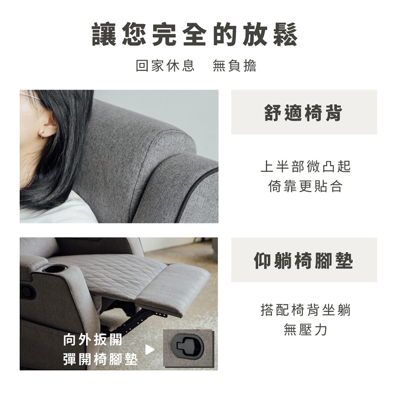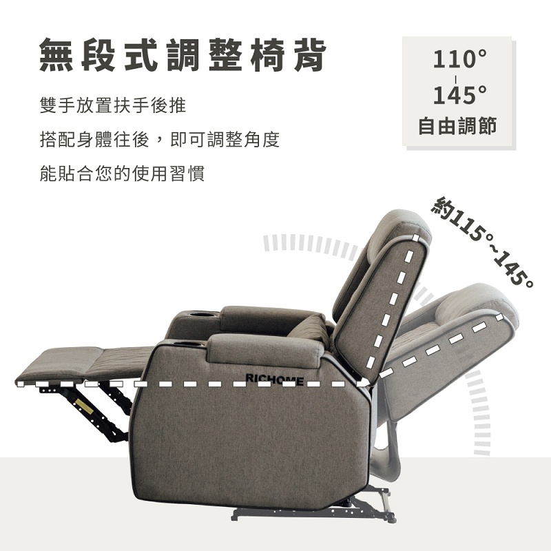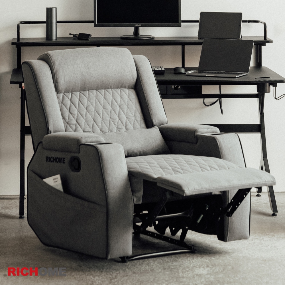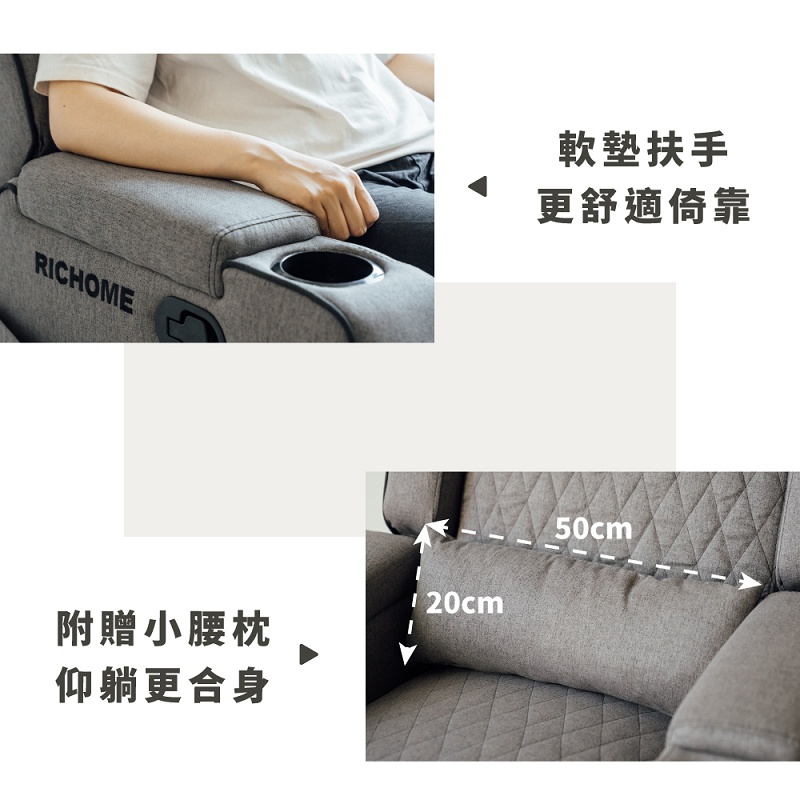 RICHOME 獨立筒單人沙發(附腰枕)(附雙杯架) 沙發 單人沙發 功能沙發 功能沙發 SF054灰色SofasRICHOME 生活家居