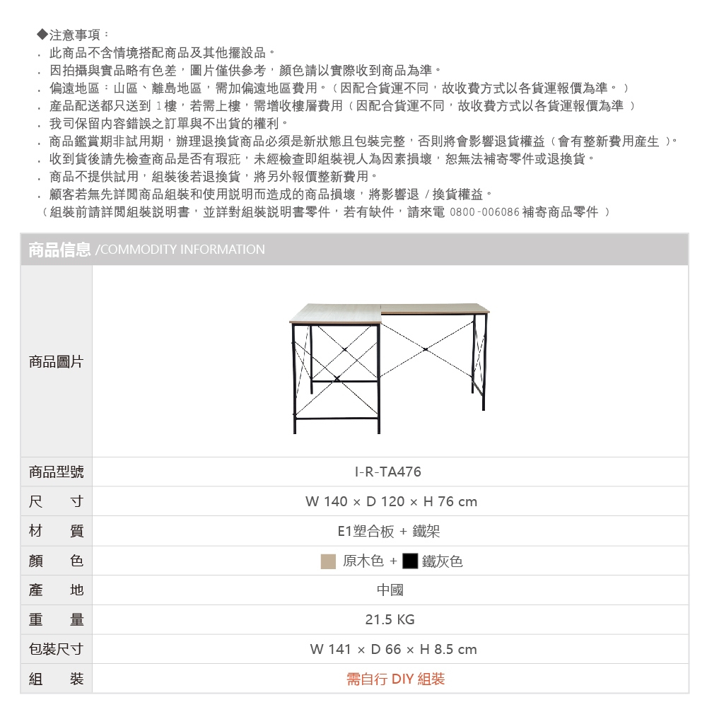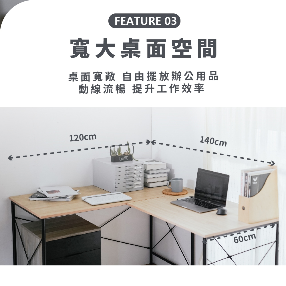 RICHOME 奧斯陸L型工作桌 (E1板) 工作桌 電腦桌 辦公桌 TA476原木色+鐵灰色Desks & TablesRICHOME 生活家居
