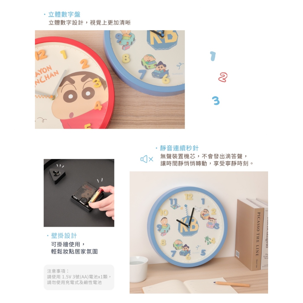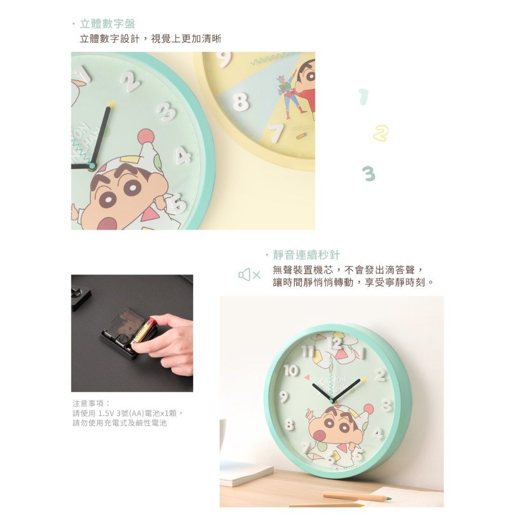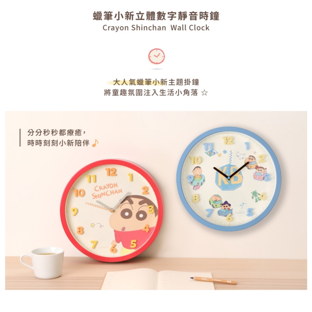 Norns 時鐘 蠟筆小新-時鐘掛鐘 掛鐘 可愛時鐘 數字時鐘 靜音時鐘 造型時鐘 壁鐘 可愛掛鐘 造型掛鐘 小新經典小新|碰碰車|晚安|玩具ClocksNorns