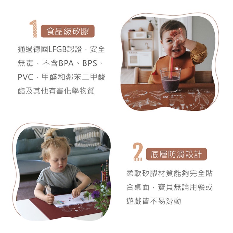丹麥By Lille Vilde 矽膠多功能墊 餐墊 學習桌墊 烘焙墊森林動物-深灰色款|森林動物-咖啡色款|數字-草綠色款|數字-暖棕色款|字母-灰藍款|字母-大地棕Placemats & CoastersSmallLoft艾兒樂時尚育兒精品