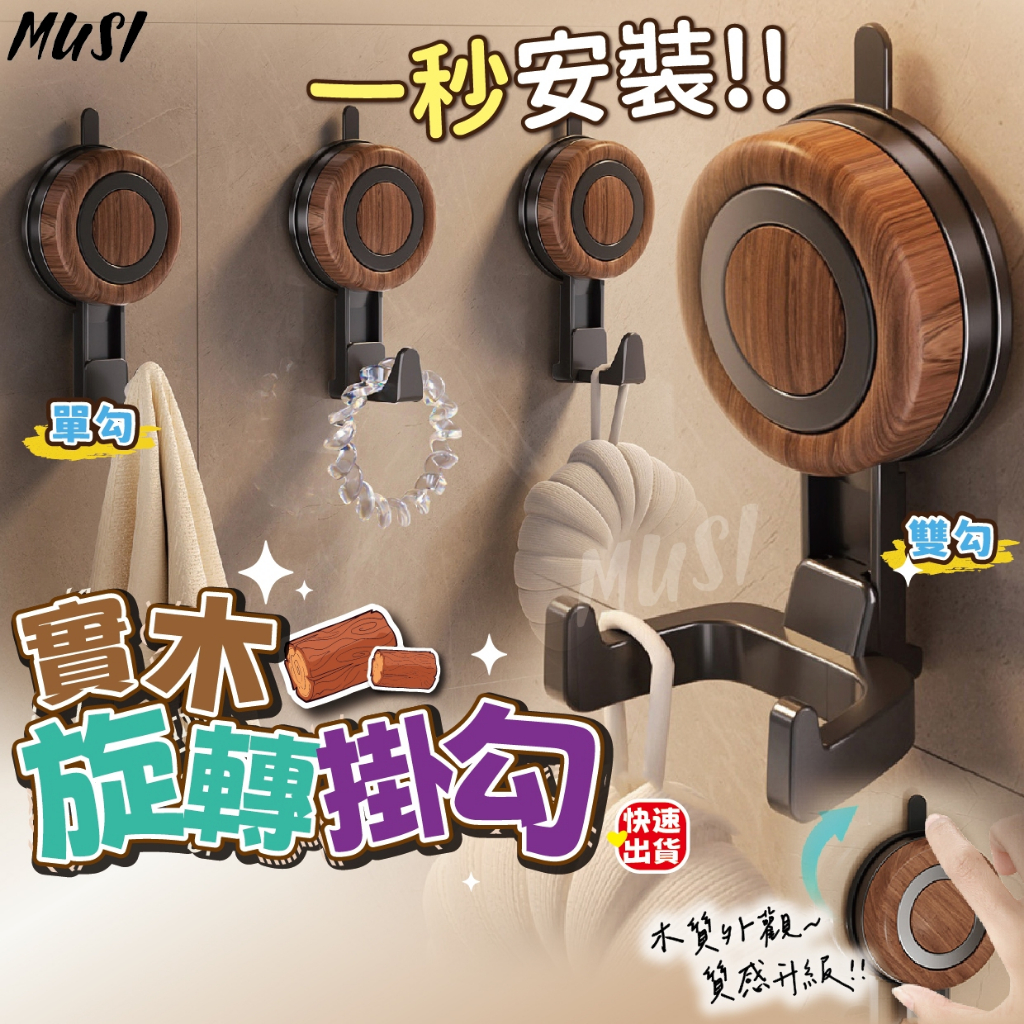[實木外型LOFT風格]吸盤掛鉤 掛鉤 掛勾 一秒安裝不傷牆面 無痕掛勾 免釘掛勾 吸盤式掛勾實木旋轉掛勾-單勾 現貨隔天發|實木旋轉掛勾-雙勾 現貨隔天發HooksMUSI 口罩&包包帽子 專賣