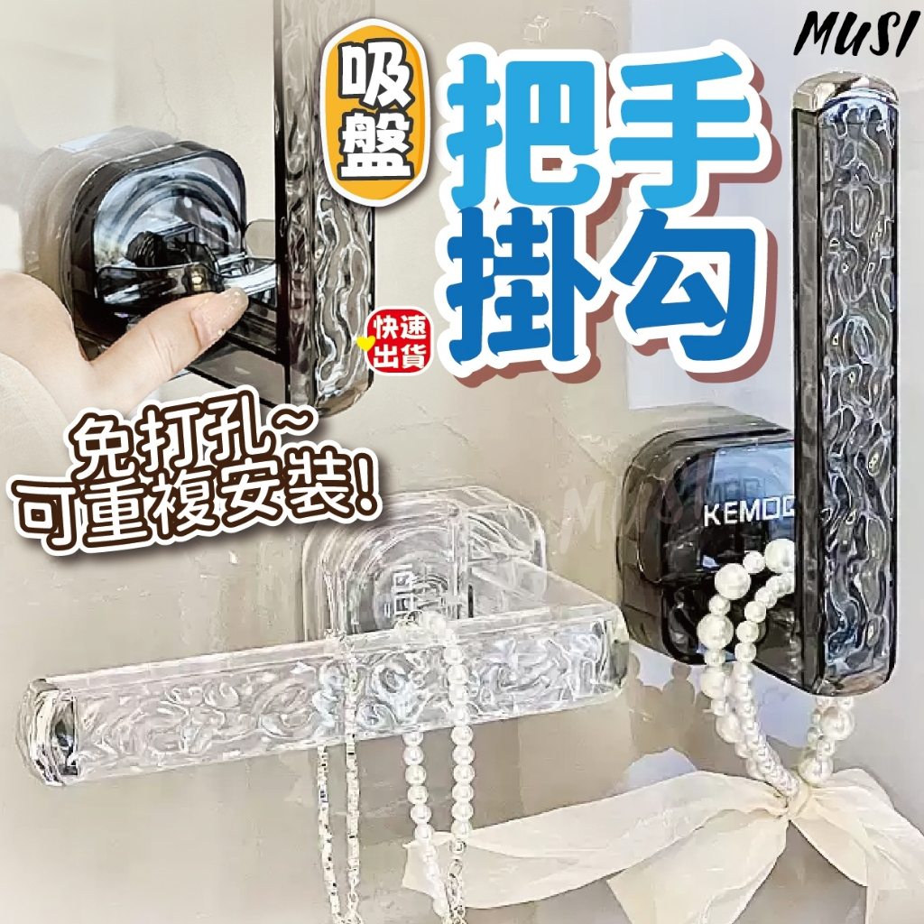 [隔日到貨]吸盤掛勾 掛鉤 掛勾 免打孔一秒拆卸一轉固定 是掛勾也是門把手 門把 拉門 把手 無痕掛勾 門後掛勾無痕吸盤掛勾-透白把手掛勾 現貨隔天發|無痕吸盤掛勾-透黑把手掛勾 現貨隔天發HooksMUSI 口罩&包包帽子 專賣