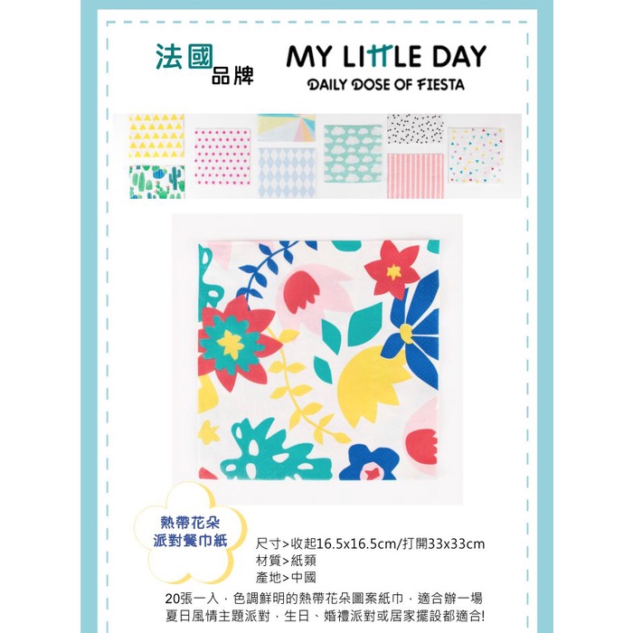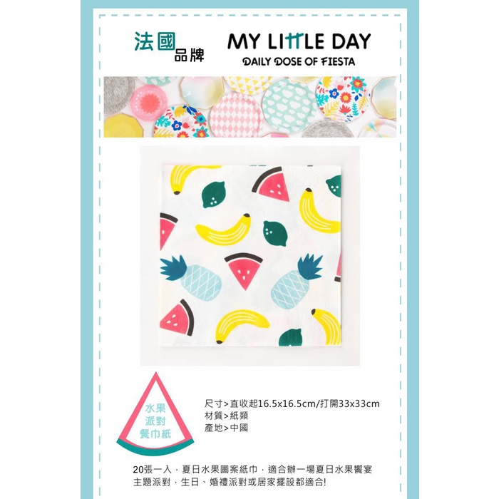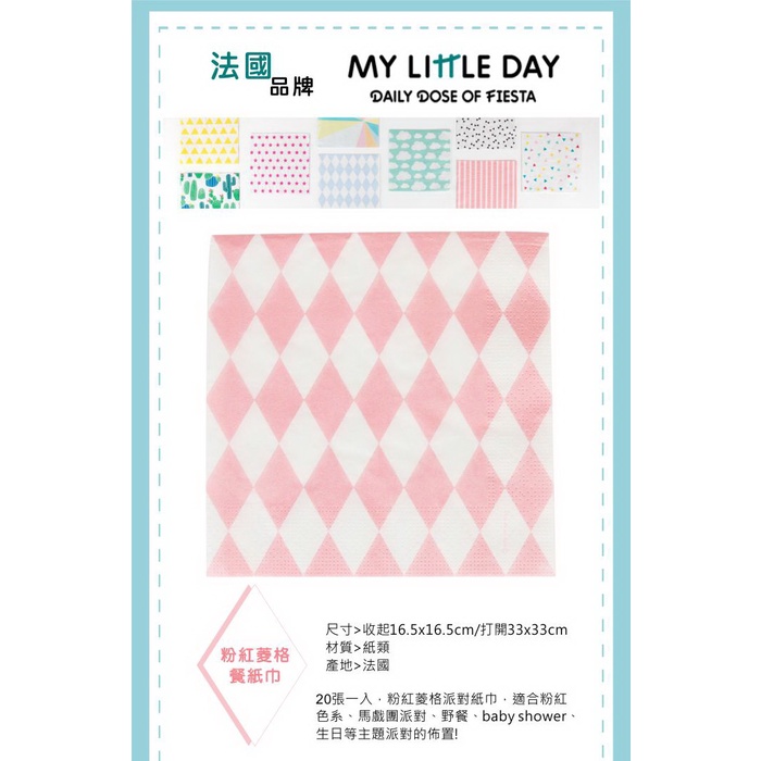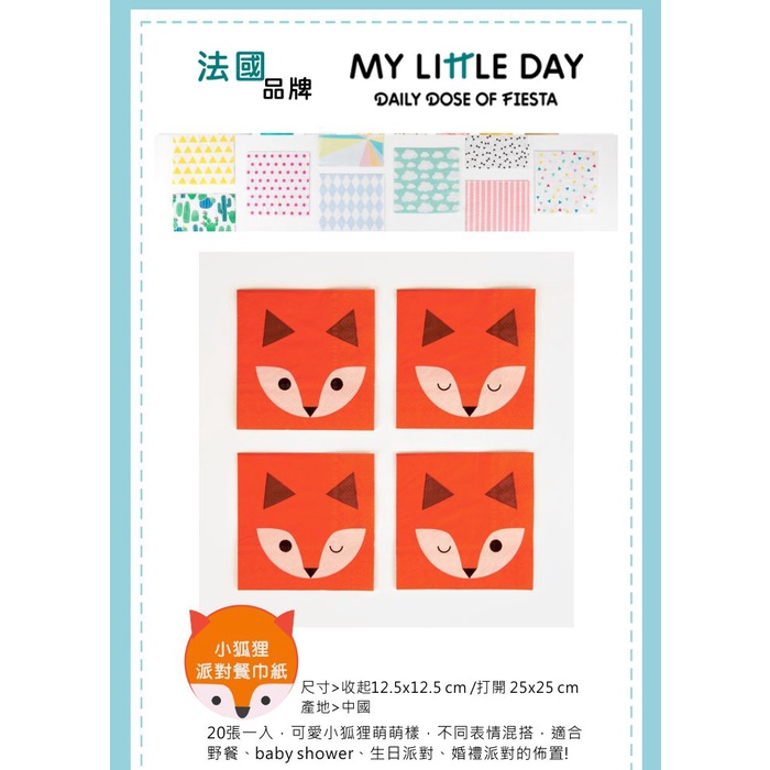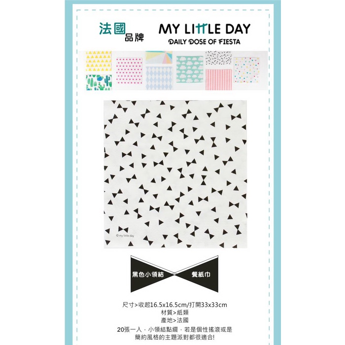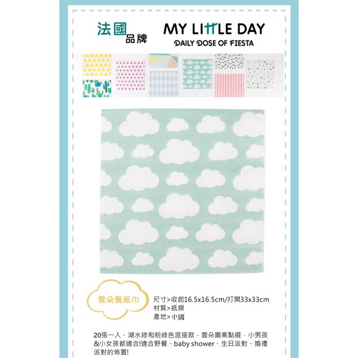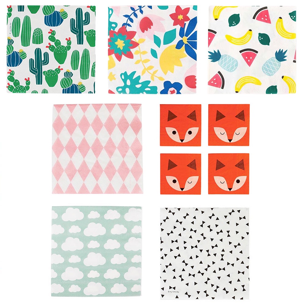 法國My Little Day 派對餐巾紙(衛生紙)(派對用品)(Songbaby)粉紅菱格|小狐狸|雲朵|黑色小領結|仙人掌|熱帶花朵|水果Disposable TablewareSongBaby 親子生活美學館