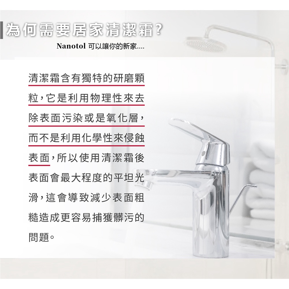 Nanotol ❙ 居家基本除垢 ❙ 居家奈米清潔霜 不刮傷菜瓜布 清潔劑 除垢 水垢 研磨霜Nanotol ❙ 居家基本除垢 ❙ 居家奈米清潔霜 不刮傷菜瓜布 清潔劑 除垢 水垢 研磨霜Cleaning AgentsNANOTOL官方旗艦館