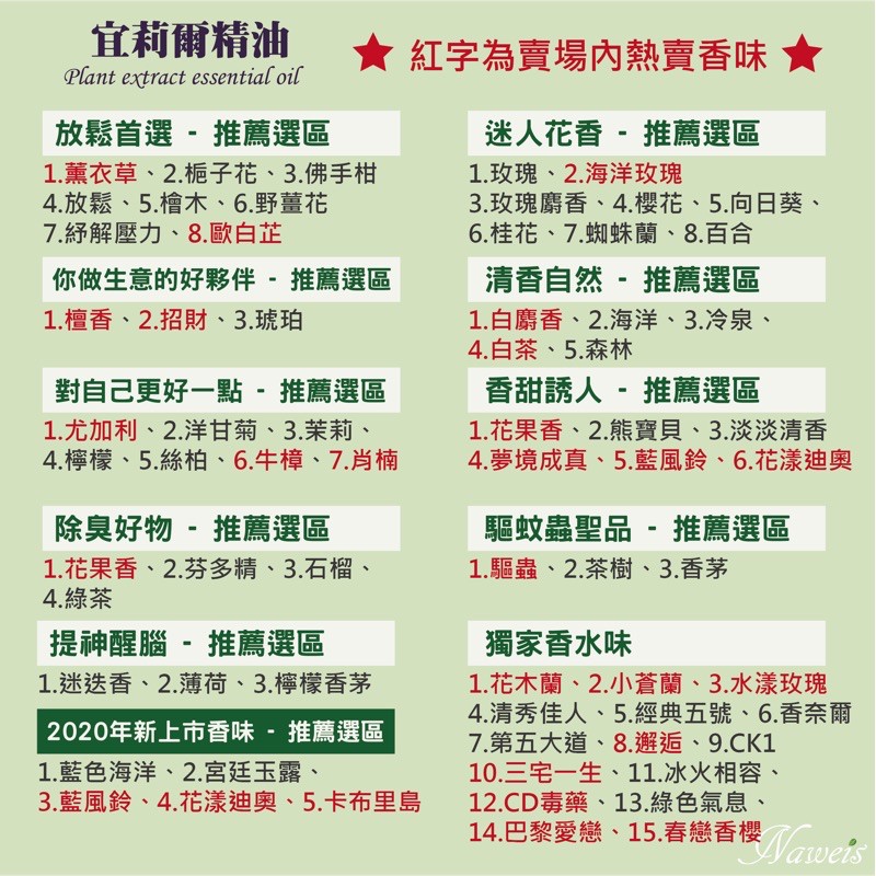 宜莉爾油性精油 法國夏波拉純植物油性10ml精油100元(買10送2優惠) 納唯詩精油 擴香儀 薰香油歐白芷(舒壓首選)👍|白麝香(美體首選)👍|佛手柑(香水佛手正能量)👍|芬多精(清淨森林)👍|向日葵(柔和溫柔香)👍|海洋玫瑰(浪漫野艷)👍|玫瑰麝香(高雅玫瑰)|夢境成真(清香微甜安娜蘇)👍|CD毒藥(迪奧濃郁經典)👍|巴黎愛戀(清香果香)|花漾迪奧(花香香水調)👍|紓解壓力(spa館裡的香氣)👍|招財進寶(紅包🧧香氣)|三宅一生(溫和花香)👍|藍色海洋(海鹽鼠尾草)|檸檬香茅(防臭驅蚊)|綠色氣息(香奈爾經典香味)|其他香味(聊聊告知香味唷)|檜木(木質調)|小蒼蘭(英國梨香水)|水漾玫瑰(Chloe香水)👍|茶樹(殺菌好幫手)|邂逅(香奈浪漫香)👍|放鬆(複方中性香調)👍|冷泉(古龍香氣)|茉莉|櫻花(柔和花香)👍|海洋(自然清香)|玫瑰(花中之后)|桂花(微甜香氣)|花果香(甜美花香)熱賣🔥|薄荷(清涼清新提神)|香茅(驅蟲好手)|綠茶(清香質感茶香)👍|白茶(柔和專櫃香)|尤加利(呼吸順暢)👍|薰衣草(舒眠草本首選)👍|花木蘭(香水花香)熱賣🔥|檀香(精典花香)|驅蟲(小白菊)植物香氣Essential OilsNaweis納唯詩精油
