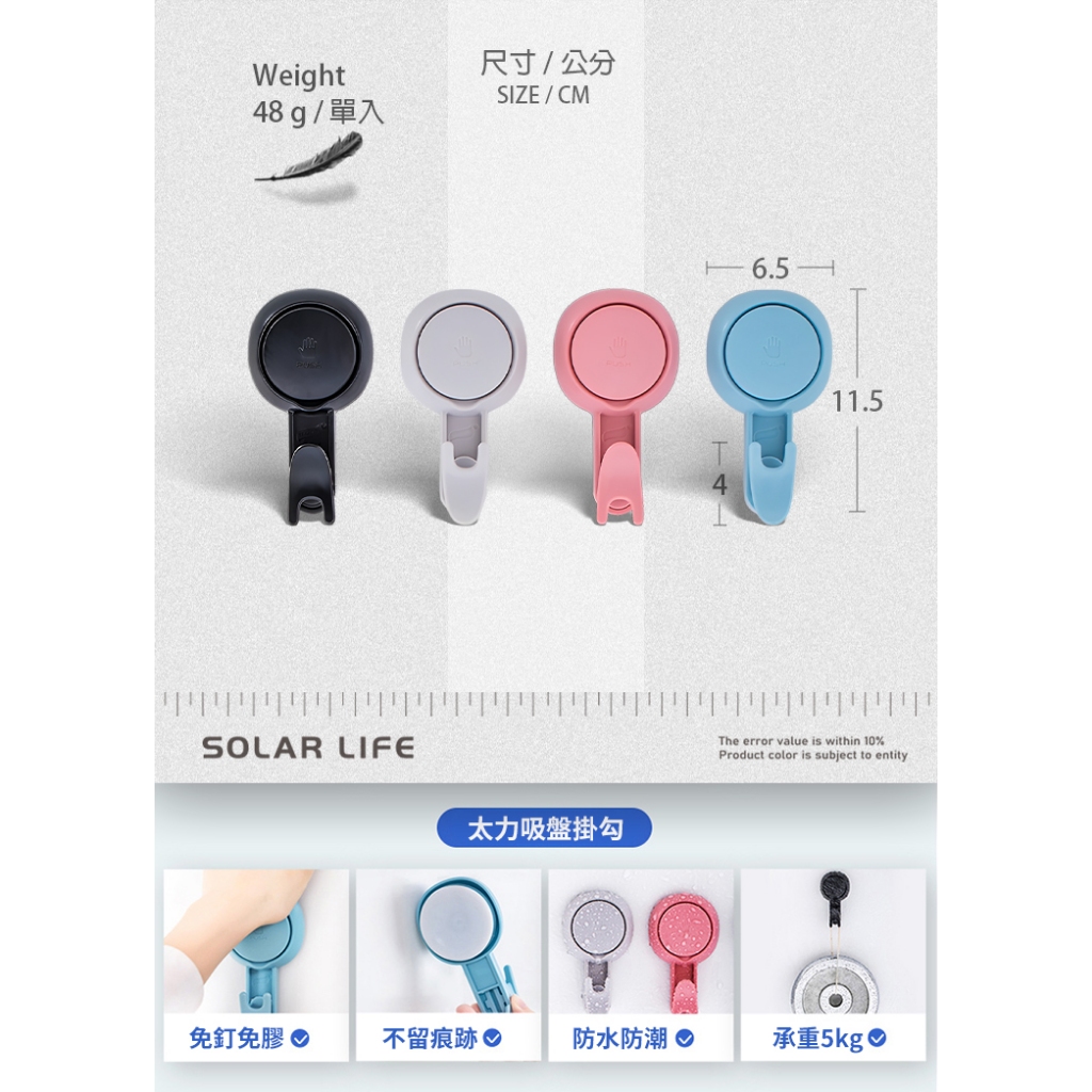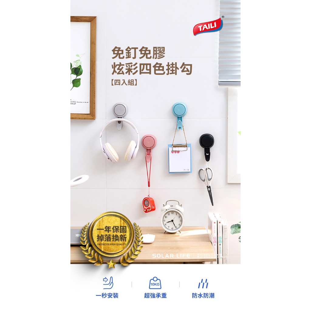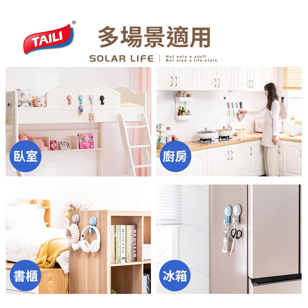 TAILI太力 真空吸盤4色炫彩掛勾 強力掛勾 浴室掛鉤 廚具掛勾 吸盤掛鈎 3M無痕掛勾TAILI太力 真空吸盤4色炫彩掛勾 強力掛勾 浴室掛鉤 廚具掛勾 吸盤掛鈎 3M無痕掛勾HooksSolar Life 索樂生活 | Keith鎧斯鈦台灣總代理
