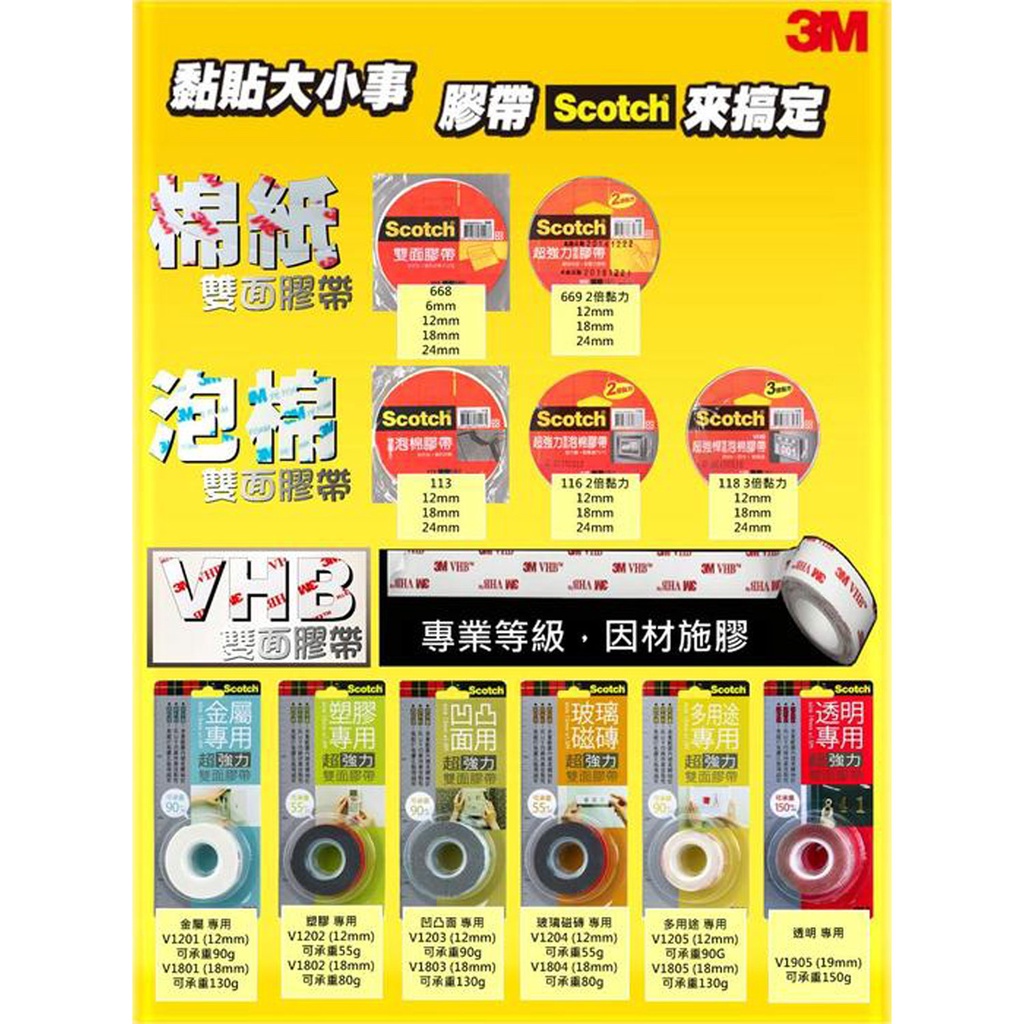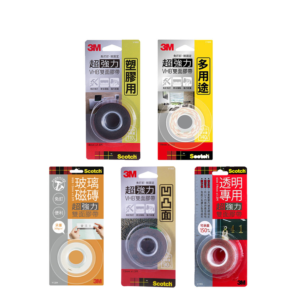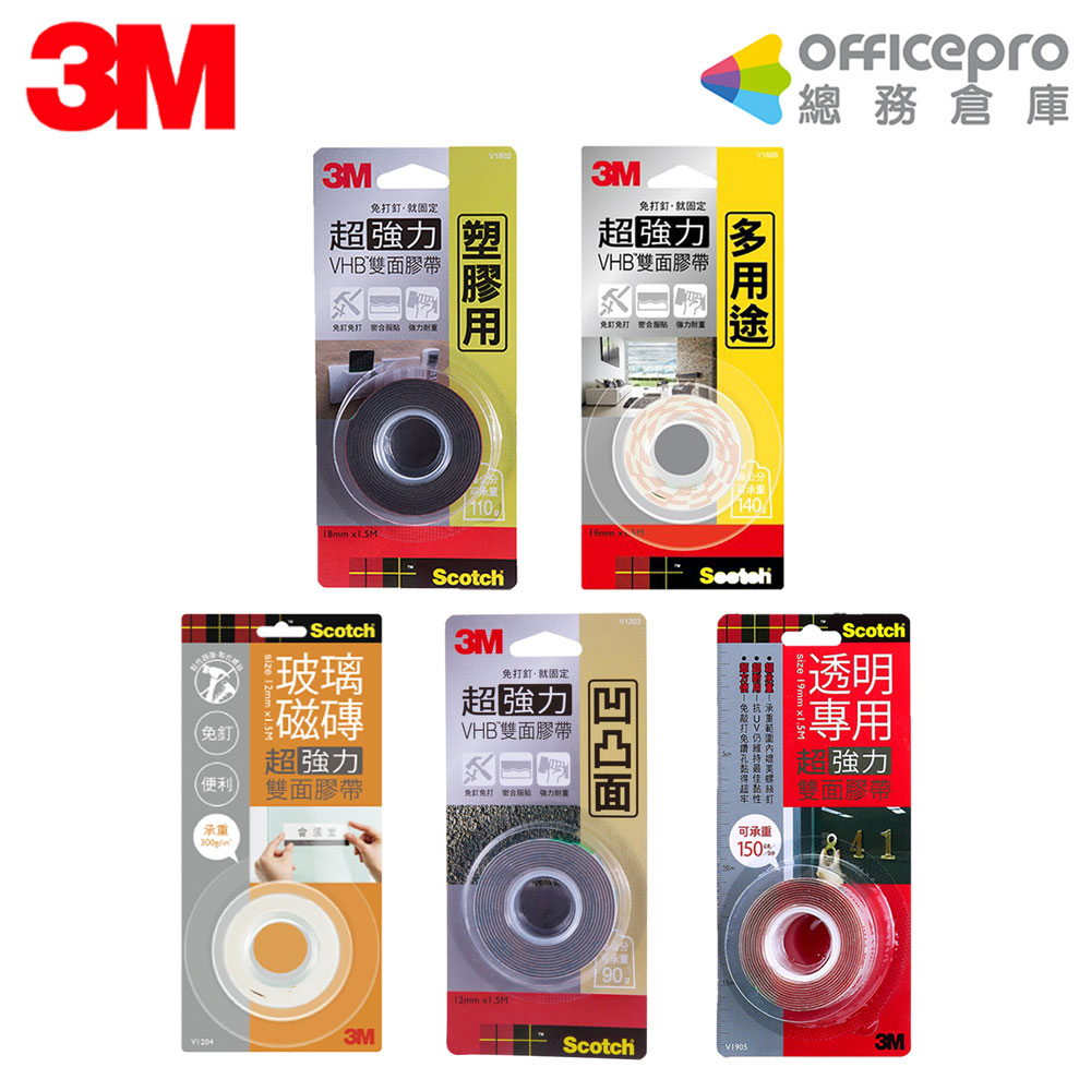 3M Scotch 超強力雙面膠帶 凹凸面 多用途 透明 耐熱 金屬 塑膠專用 雙面膠 黏貼用品V1206N耐熱專用/12mmx1.5M|V1803N粗糙面用/18mmx1.5M|V1805N多用途用/18mmx1.5M|V1202N塑膠專用/12mmx1.5M|V1802N塑膠專用/18mmx1.5M|V1909N透明專用/19mmx1.5m|V1204N玻璃磁磚/12mmx1.5M|V1804N玻璃磁磚/18mmx1.5M|V1207N防水用/12mmx1.5M|V1806N耐熱用/18mmx1.5M|V1203N粗糙面用/12mmx1.5M|V1205N多用途用/12mmx1.5M|V1807N防水用/18mmx1.5M|V1808N戶外用/18mmx1.5M|V1208N戶外用/12mmx1.5M|V1801N金屬用/18mmx1.5M|V1201N金屬用/12mmx1.5MIndustrial Adhesives & TapesOfficepro總務倉庫 旗艦店