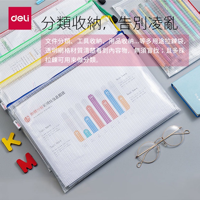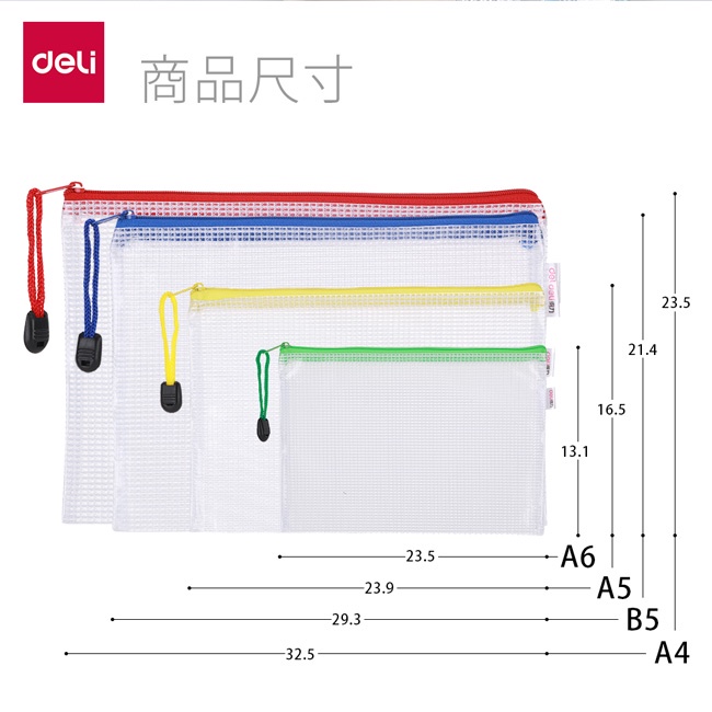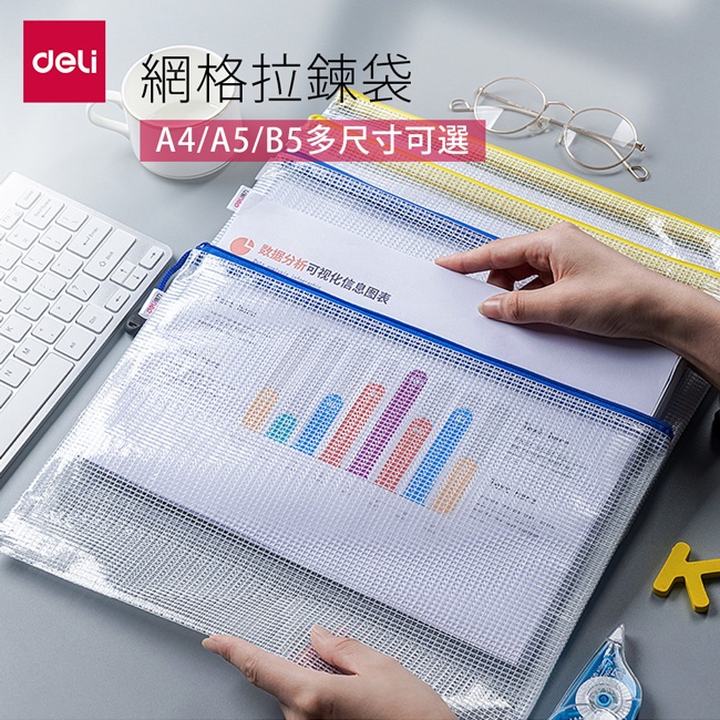 得力Deli 網格拉鍊袋(5656/A5)(5654/A4)-混色出貨 PVC 旅行分類袋 文件袋 小物品盥洗用品收納A4|A5OthersOfficepro總務倉庫 旗艦店