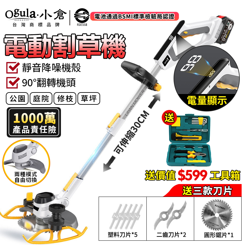 【Ogula小倉】割草機 除草機 鋰電割草機 手推割草機 帶電量顯示屏-電池認證BSMI:R3E558【10倍蝦幣回饋】一代坦克輪數顯款【十節一電】+全套配件|一代坦克輪數顯款【十節兩電】+全套配件|24V家用級可伸縮【7000M】一電|24V家用級可伸縮【7000M】兩電|二代坦克輪數顯款【十五節一電】+全套配件|二代坦克輪數顯款【十五節兩電】+全套配件|二代坦克輪數顯款【十節一電】+全套配件|十五節電芯BSMI:R3E558認證電池|二代坦克輪數顯款【十節兩電】+全套配件|十節電芯BSMI:R3E558認證電池|一代坦克輪數顯款【十五節兩電】+全套配件|一代坦克輪數顯款【十五節一電】+全套配件Lawn MowersOgula小倉【官方旗艦店】