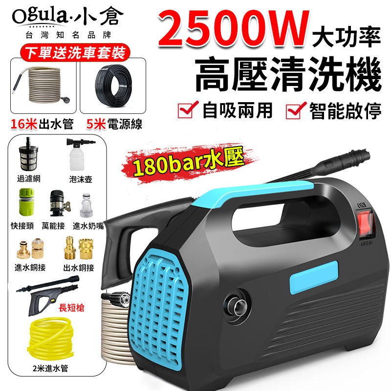 【Ogula小倉】高壓清洗機 高壓沖洗機 家用洗車機 高壓洗車機 【升級5米電源線+16米出水管】2500W高壓水槍手提式【2500W】18米管+長短槍|滑輪式【3000W】12米管+長短槍|加高滑輪【3500W】12米管+長短槍|升級繞管【3500W】12米管+長短槍ToolsOgula小倉【官方旗艦店】