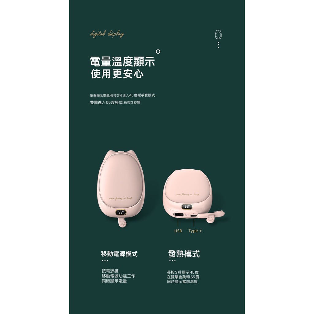 ONAIR 暖手寶 電動暖暖包 行動電源 充電式 暖暖包 攜帶式 兩用式 暖暖包 可充式 行動電源 有 WH櫻花粉|嫣紅|復古綠ONAIR 手機配件專賣店