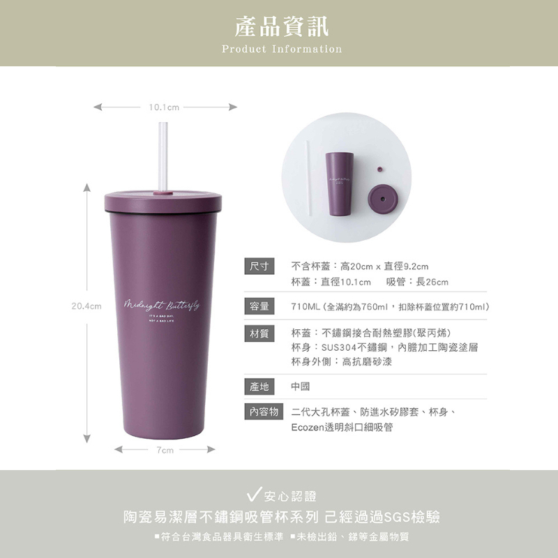 團購優惠(2入)|小莊園系列陶瓷易潔層吸管杯(二代) 710ml (7色) 保溫 保冷 水杯 水壺 手搖