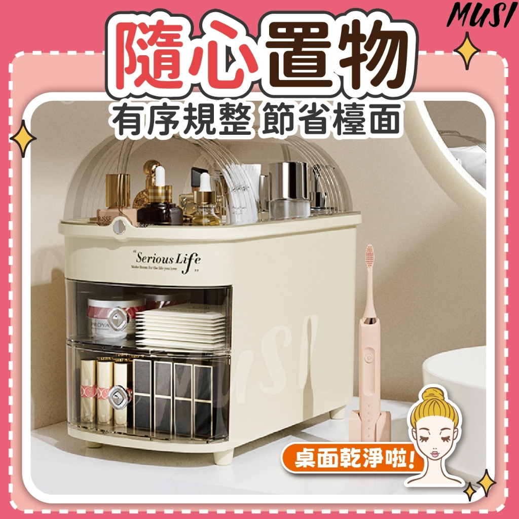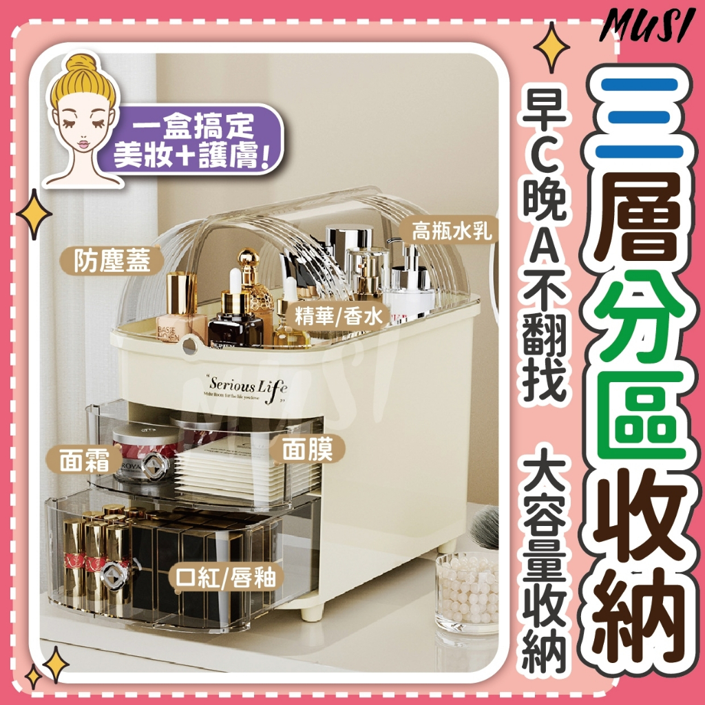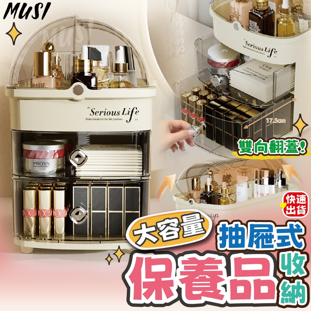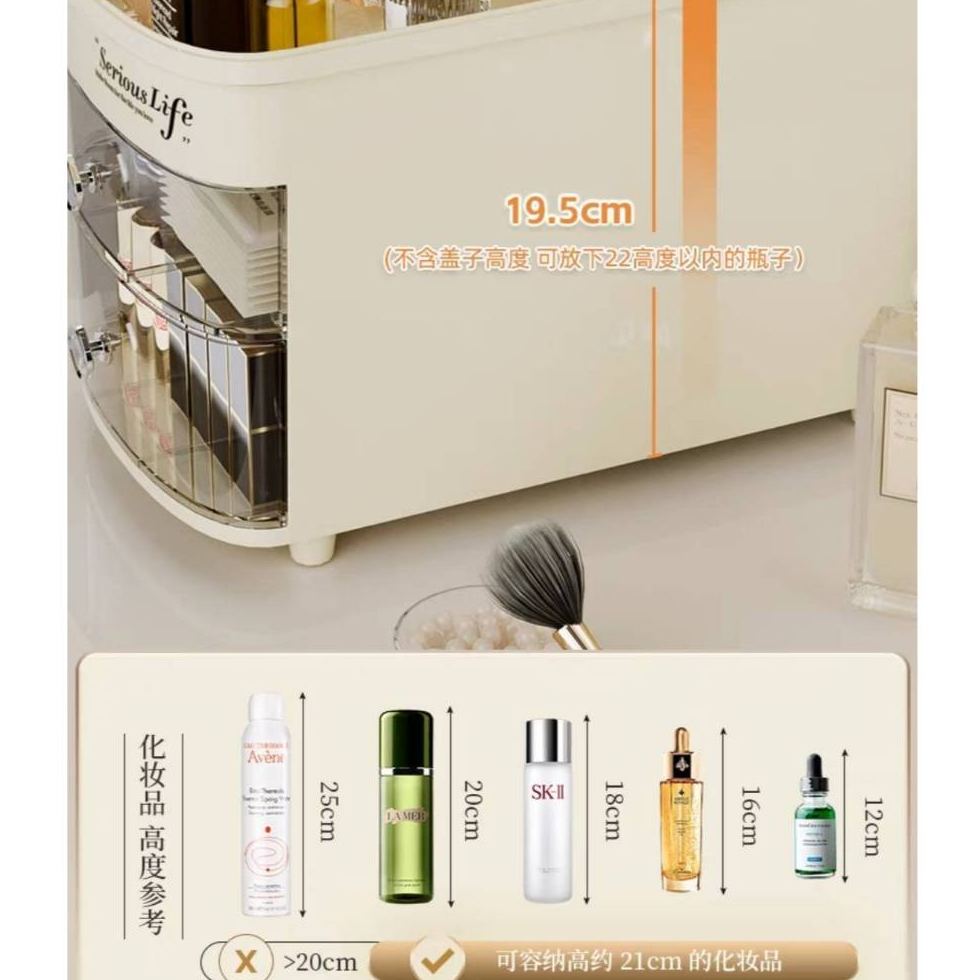 [清倉特價原價468元]保養品收納 抽屜收納盒 化妝品收納 高瓶保養品可收納 化妝盒 口紅收納 化妝收納盒 收納盒大容量抽屜式保養品收納-奶油白 現貨Desk OrganizersMUSI 口罩&包包帽子 專賣
