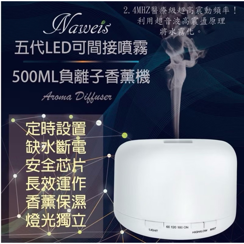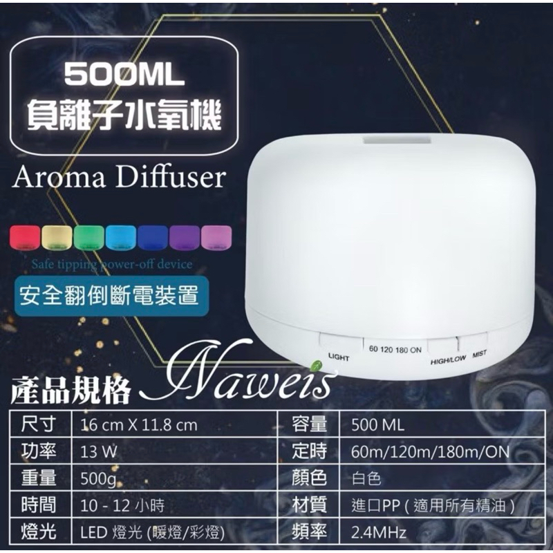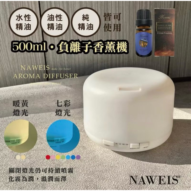 500ml遙控版水氧機 水氧機 LED 超音波負離子香薰機 加濕器 香薰 芳香 水氧機 加濕機 納唯詩精油彩燈單機|暖燈單機|彩燈單機+3瓶Naweis精油+遙控器|暖燈單機+3瓶Naweis精油+遙控器Diffusers, Humidifiers & Oil BurnersNaweis納唯詩精油