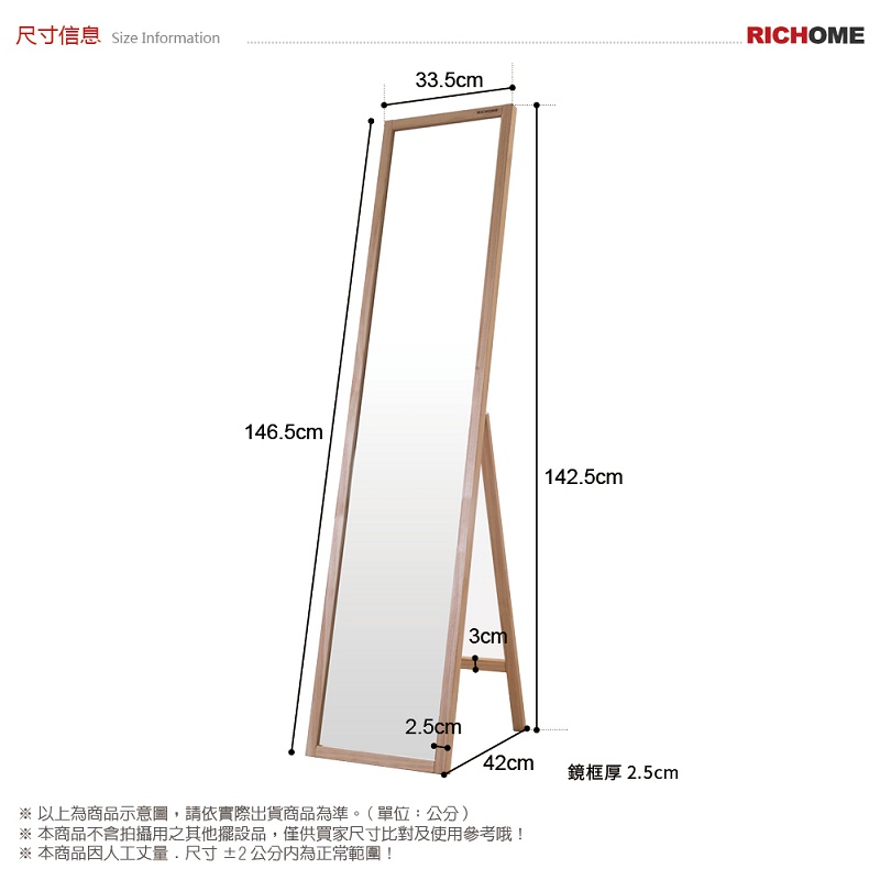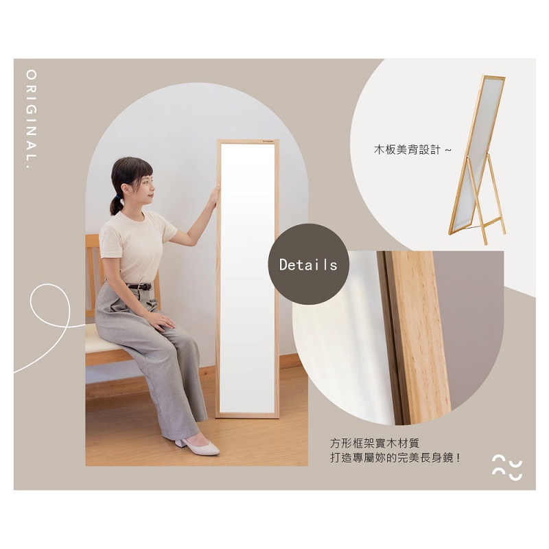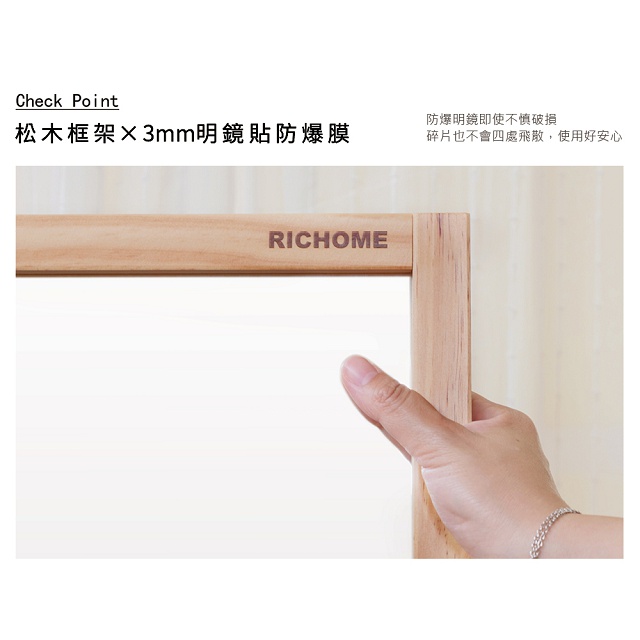 RICHOME MR135 松木大立鏡(33*146CM)(防爆) 立鏡 鏡子 全身鏡 美妝鏡原木色MirrorsRICHOME 生活家居