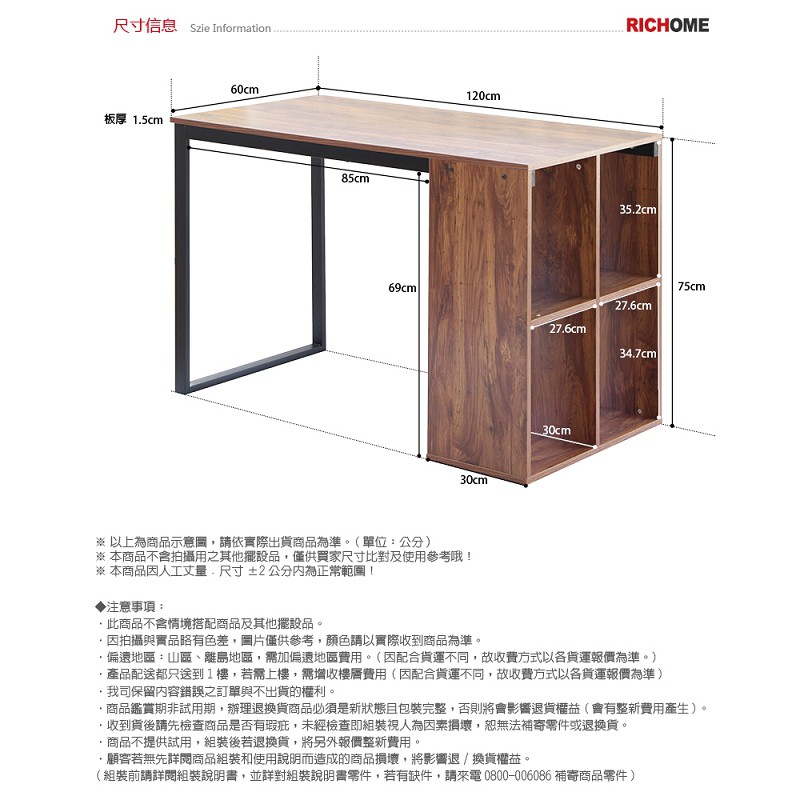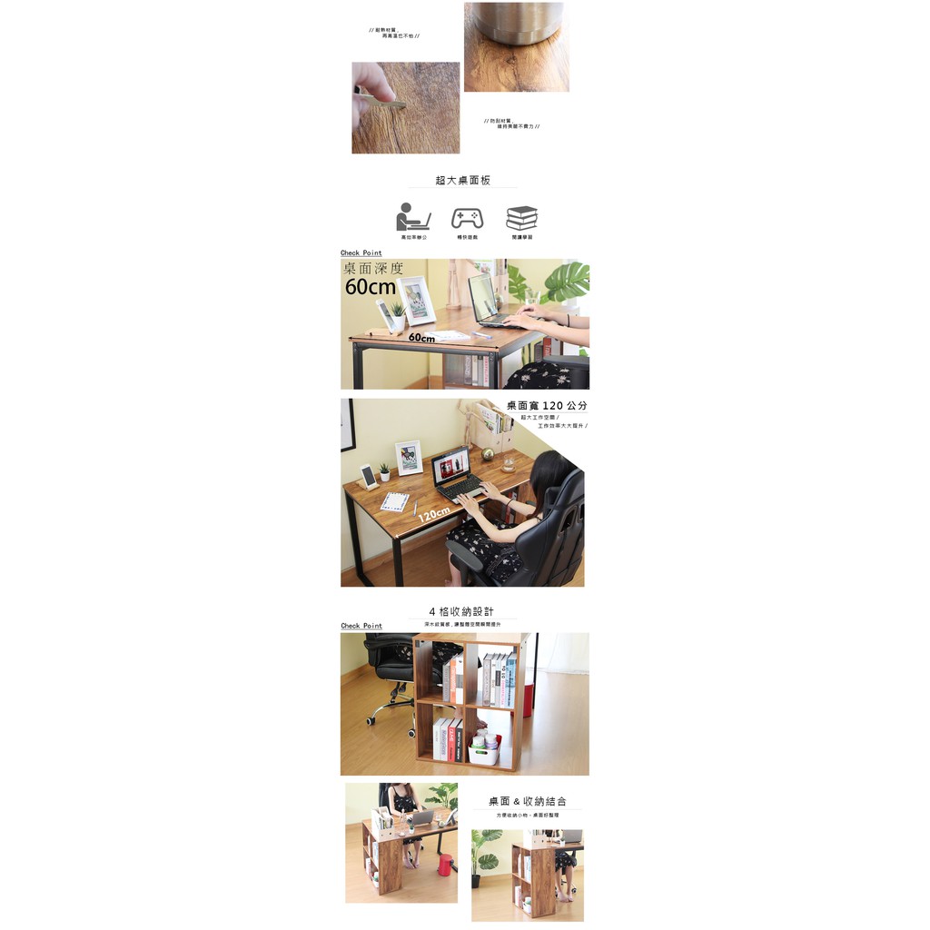 RICHOME 書櫃工作桌 收納工作桌 收納辦公桌 辦公桌 書桌 電腦桌 中島 工作桌 DE258胡桃木色Desks & TablesRICHOME 生活家居