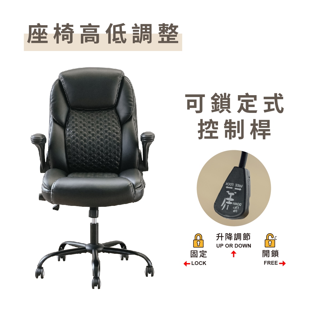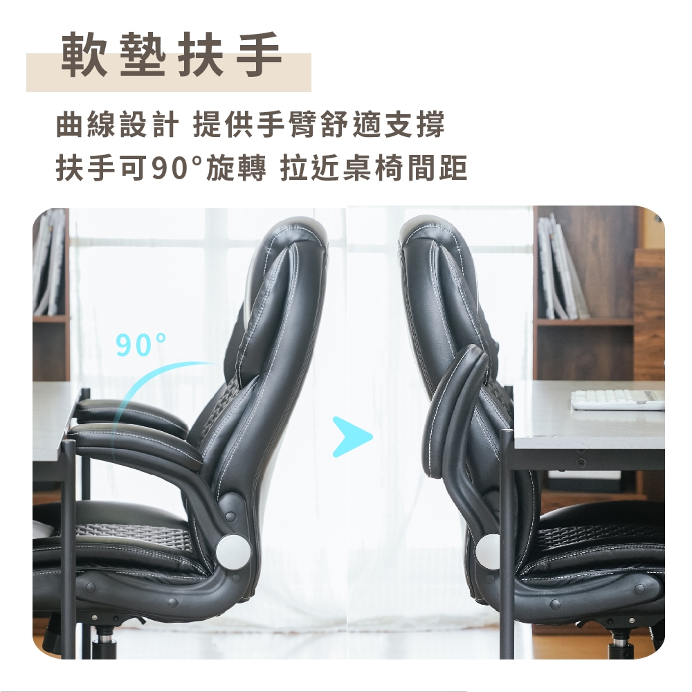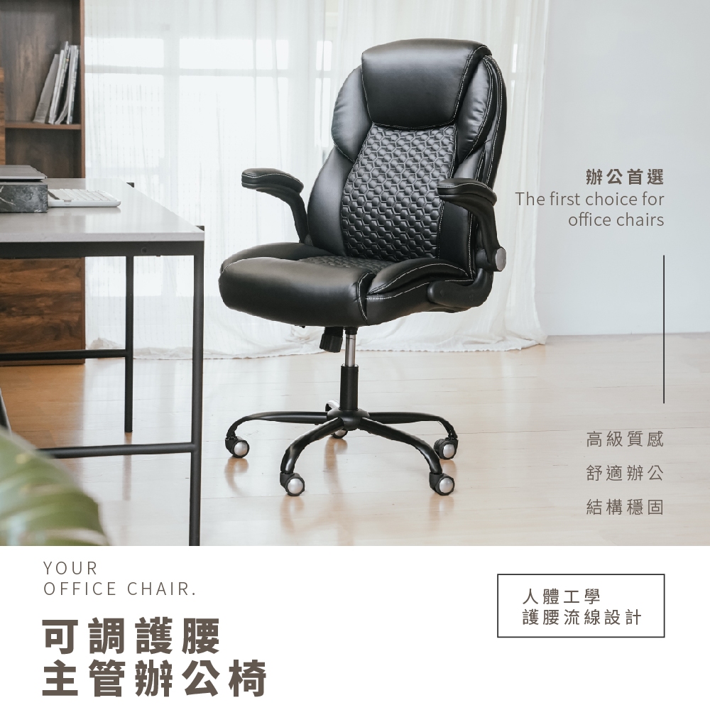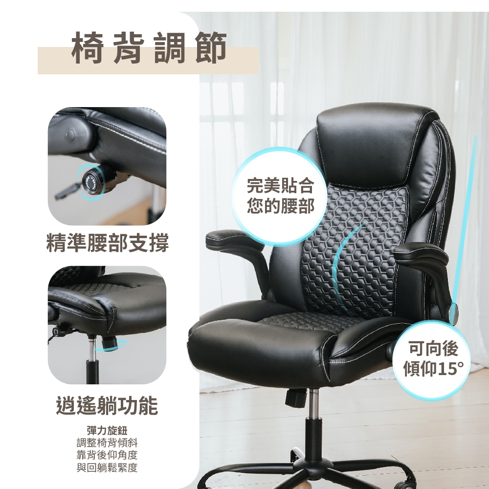 RICHOME 巴特勒可調護腰主管椅 老闆椅 辦公椅 工作椅 電腦椅 皮椅 CH1434黑色Benches, Chairs & StoolsRICHOME 生活家居