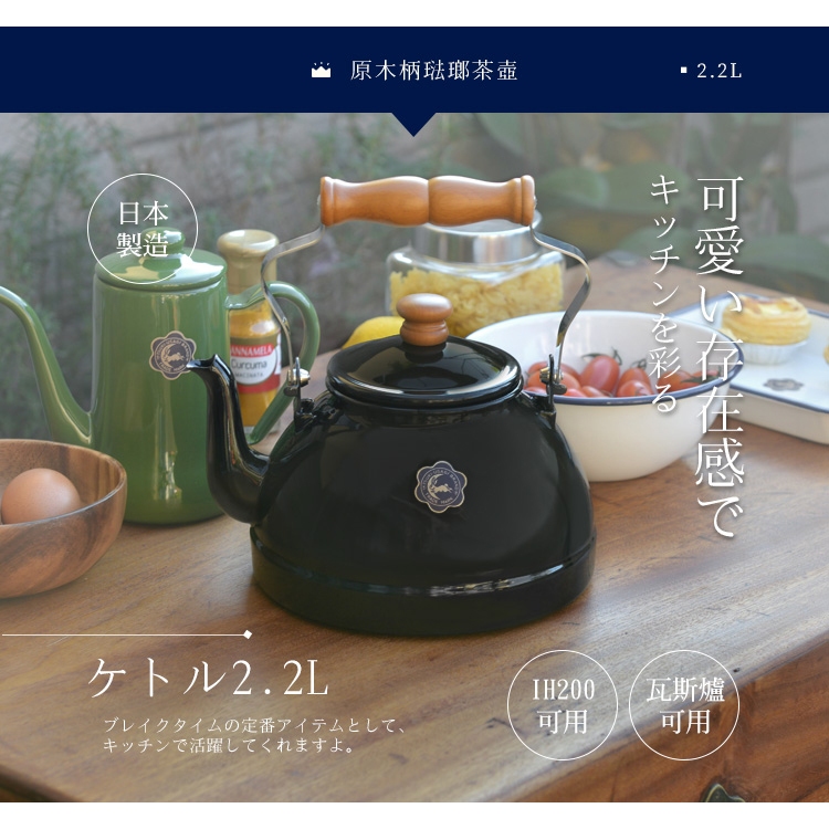 限定新色【日本月兔印】日製原木柄琺瑯茶壺-2.2L (IH爐可用)-多色可選蜂蜜奶油黃|深邃綠Tea Pots & Setsnicegoods 生活好東西