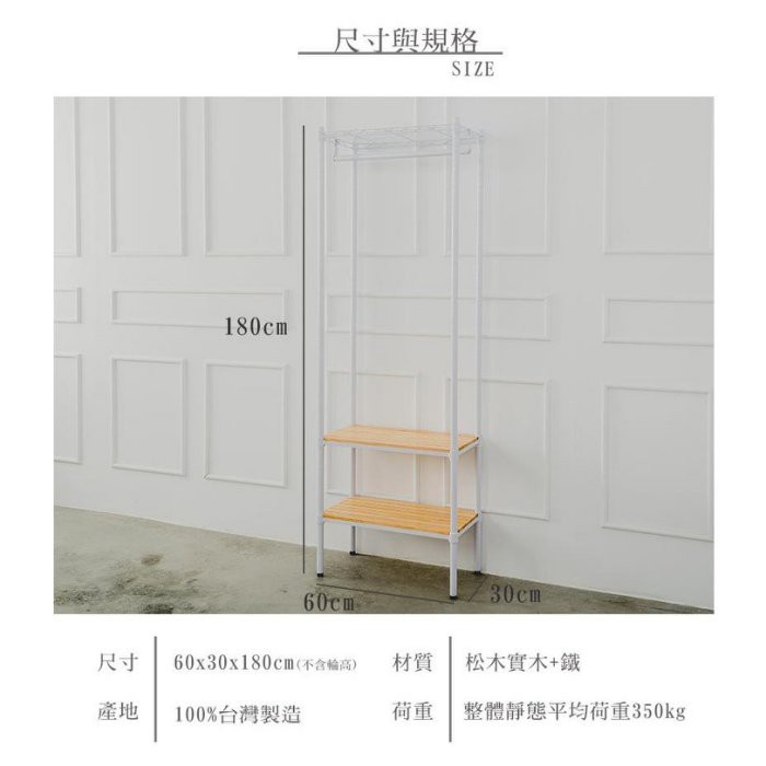 比架王 松木 60x30x180cm三層單桿衣櫥(烤漆白) 鐵力士架 波浪架 衣物收納 換季 收納衣架 套房 小家庭原木|柚木WardrobesParity 比架王居家生活館