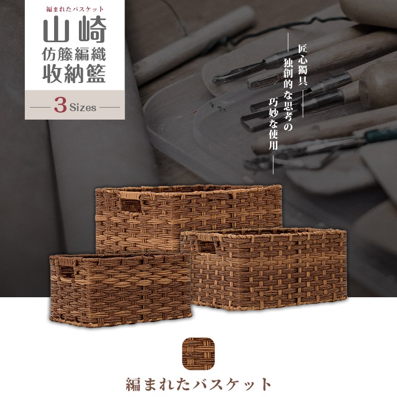 比架王 山崎仿籐編織收納籃[中款/大款/特大款/3入組] 編織籃 收納籃 置物箱 編織收納籃 收納盒 儲物 桌上收納籃