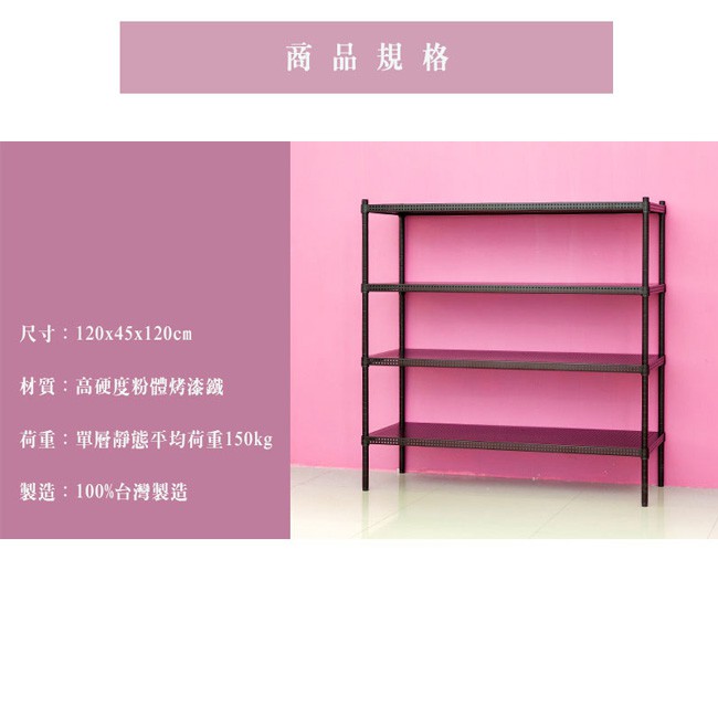 比架王 沖孔 120x45x120cm四層置物架(烤漆黑) /收納架/波浪架/置物架/鐵架比架王 沖孔 120x45x120cm四層置物架(烤漆黑) /收納架/波浪架/置物架/鐵架Shelves & RacksParity 比架王居家生活館