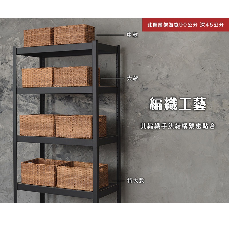 比架王 山崎仿籐編織收納籃[中款/大款/特大款/3入組] 編織籃 收納籃 置物箱 編織收納籃 收納盒 儲物 桌上收納籃中款|大款|特大款|3入組:中+大+特大Storage Boxes, Bags & BasketsParity 比架王居家生活館