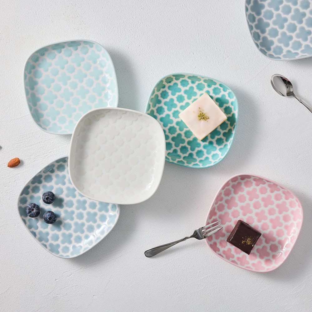 石丸波佐見燒 – 摩洛哥花磚圓角盤(小) – 5款任選《日本進口在台現貨》淺藍|淺灰|藍綠|粉紅|米白PlatesSpecies 有種創意