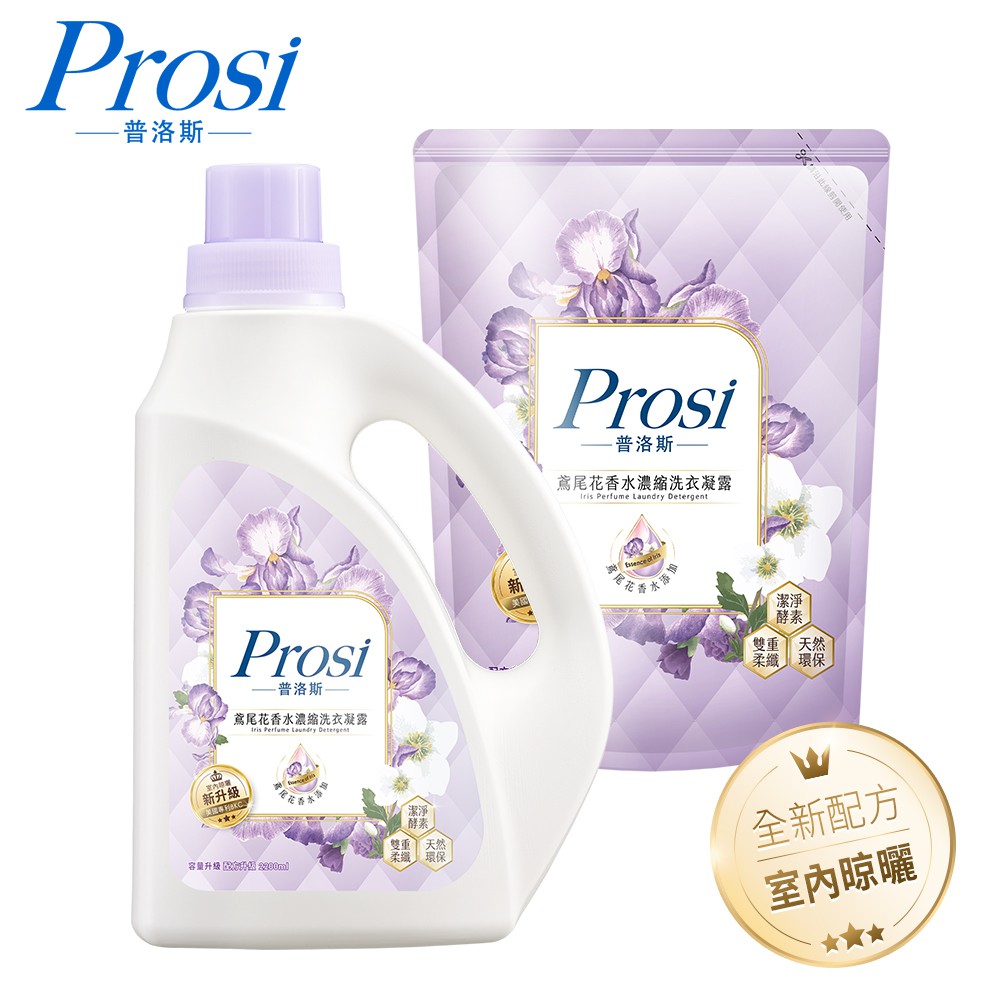 【Prosi普洛斯】 室內晾曬鳶尾花香水濃縮洗衣凝露(BKC專利消臭緩釋配方)(室內晾衣型 鳶尾花 香水洗衣)2瓶+4包|1瓶+6包|1瓶+2包|1瓶+4包Laundry CareProsi普洛斯官方直營店_普洛斯Prosi/御衣坊Akira