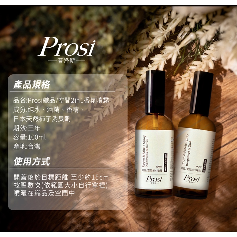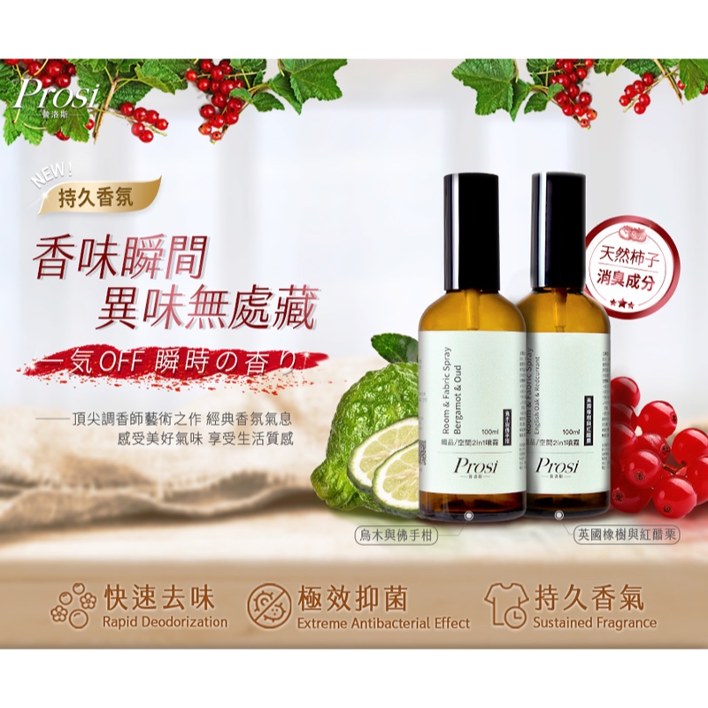 【Prosi普洛斯】消臭/除臭·織品/空間2in1香氛噴霧烏木與佛手柑100mlx1瓶|英國橡樹與紅醋栗100mlx1瓶Laundry CareProsi普洛斯官方直營店_普洛斯Prosi/御衣坊Akira