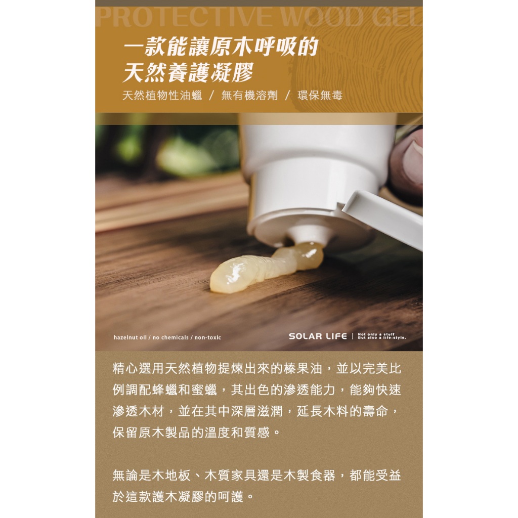 原木呼吸 護木凝膠 115g 蜂蠟護木油 實木保養油 護木蠟木蠟油 傢俱護理蠟 家具保養 蠟油 吉他 木頭保養原木呼吸 護木凝膠 115g 蜂蠟護木油 實木保養油 護木蠟木蠟油 傢俱護理蠟 家具保養 蠟油 吉他 木頭保養Wall Paints & CoatingsSolar Life 索樂生活 | Keith鎧斯鈦台灣總代理