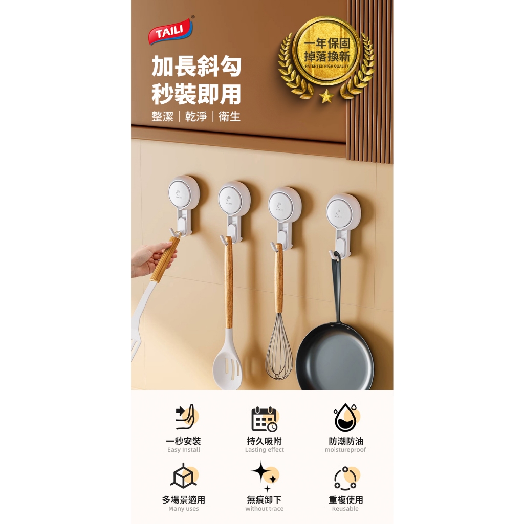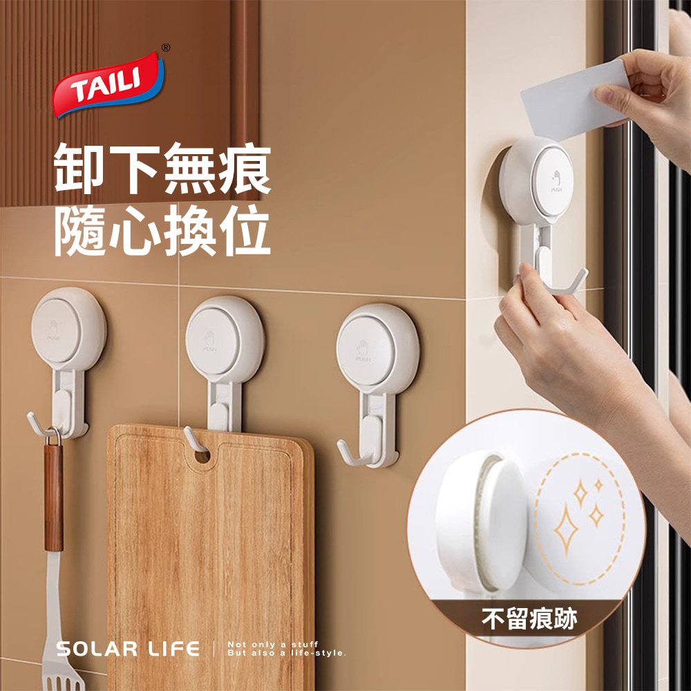 TAILI太力 真空吸盤掛勾/斜勾 無痕掛勾 免釘強力掛勾 廚房浴室掛鉤 廚具掛勾 強力吸盤 3M掛勾 移動掛勾單入|4入優惠盒裝HooksSolar Life 索樂生活 | Keith鎧斯鈦台灣總代理