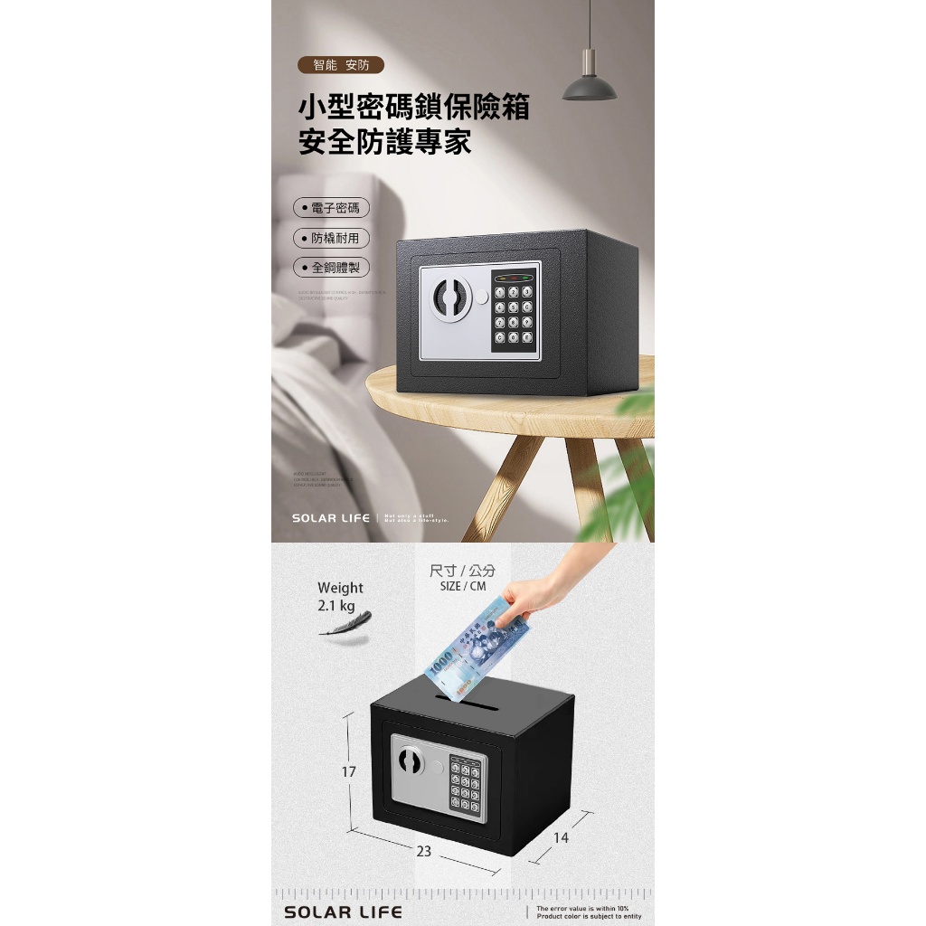 Solar Life 索樂生活 電子防盜保險箱 (超取限購一台) 密碼防盜箱 居家小金庫 小型保險櫃 電子保管箱 存錢筒Solar Life 索樂生活 電子防盜保險箱 (超取限購一台) 密碼防盜箱 居家小金庫 小型保險櫃 電子保管箱 存錢筒SafesSolar Life 索樂生活 | Keith鎧斯鈦台灣總代理